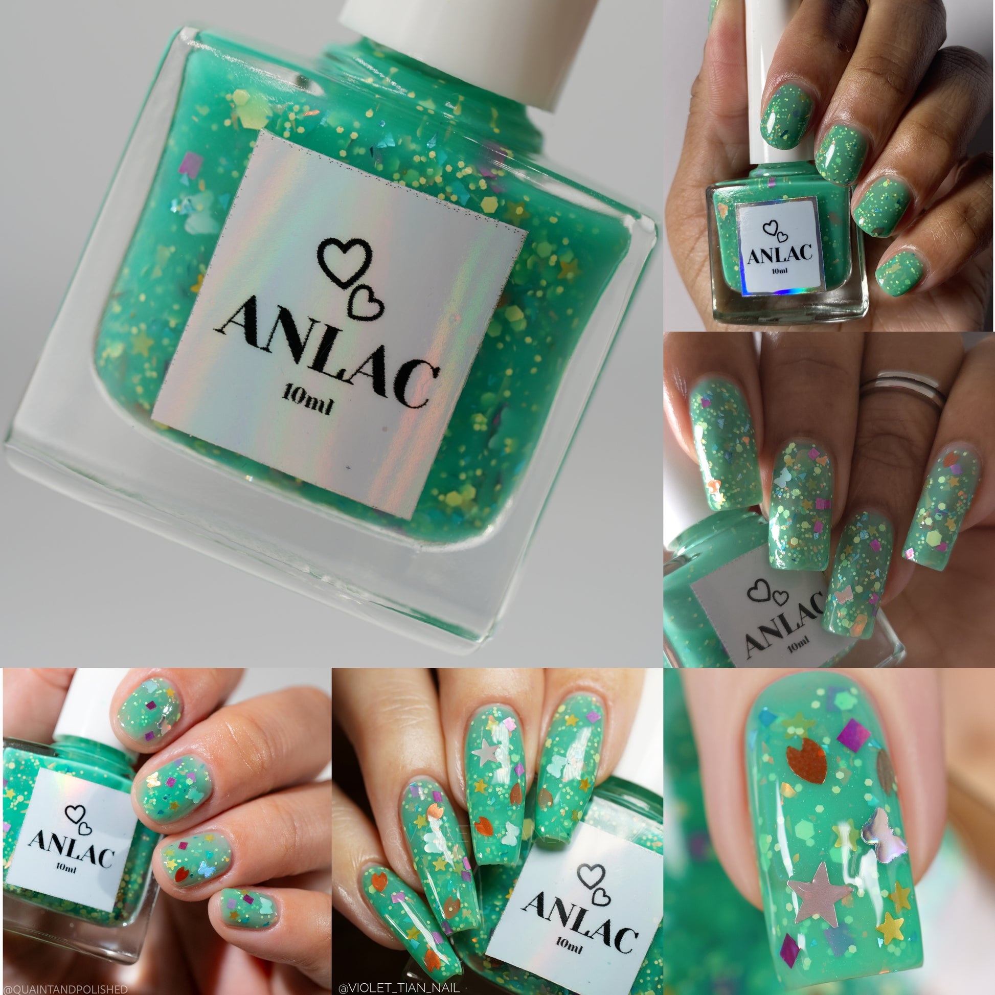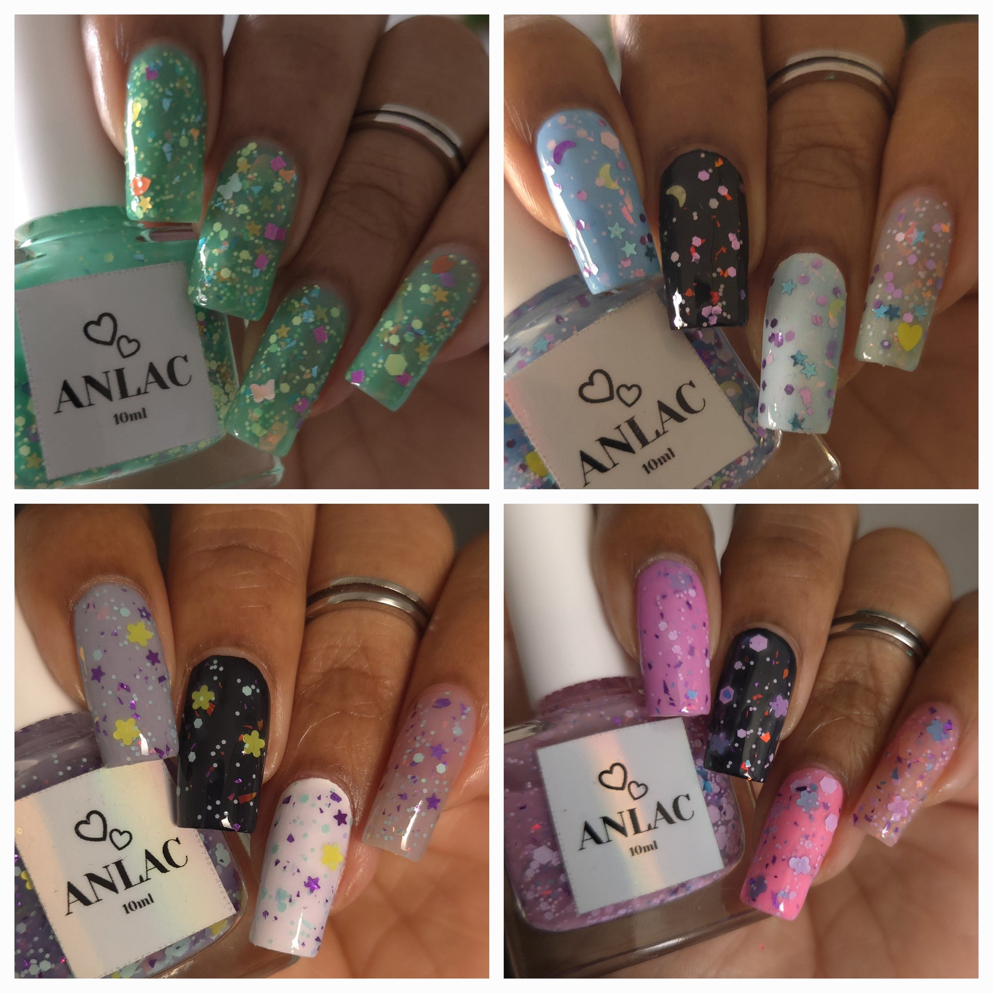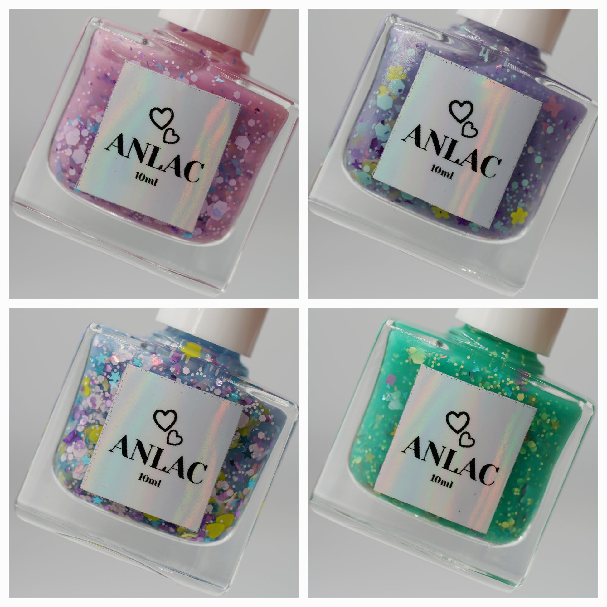 Each polish comes with a small bag of larger glitters to make application easier, so you don’t have to fish for specific shapes in the bottle.