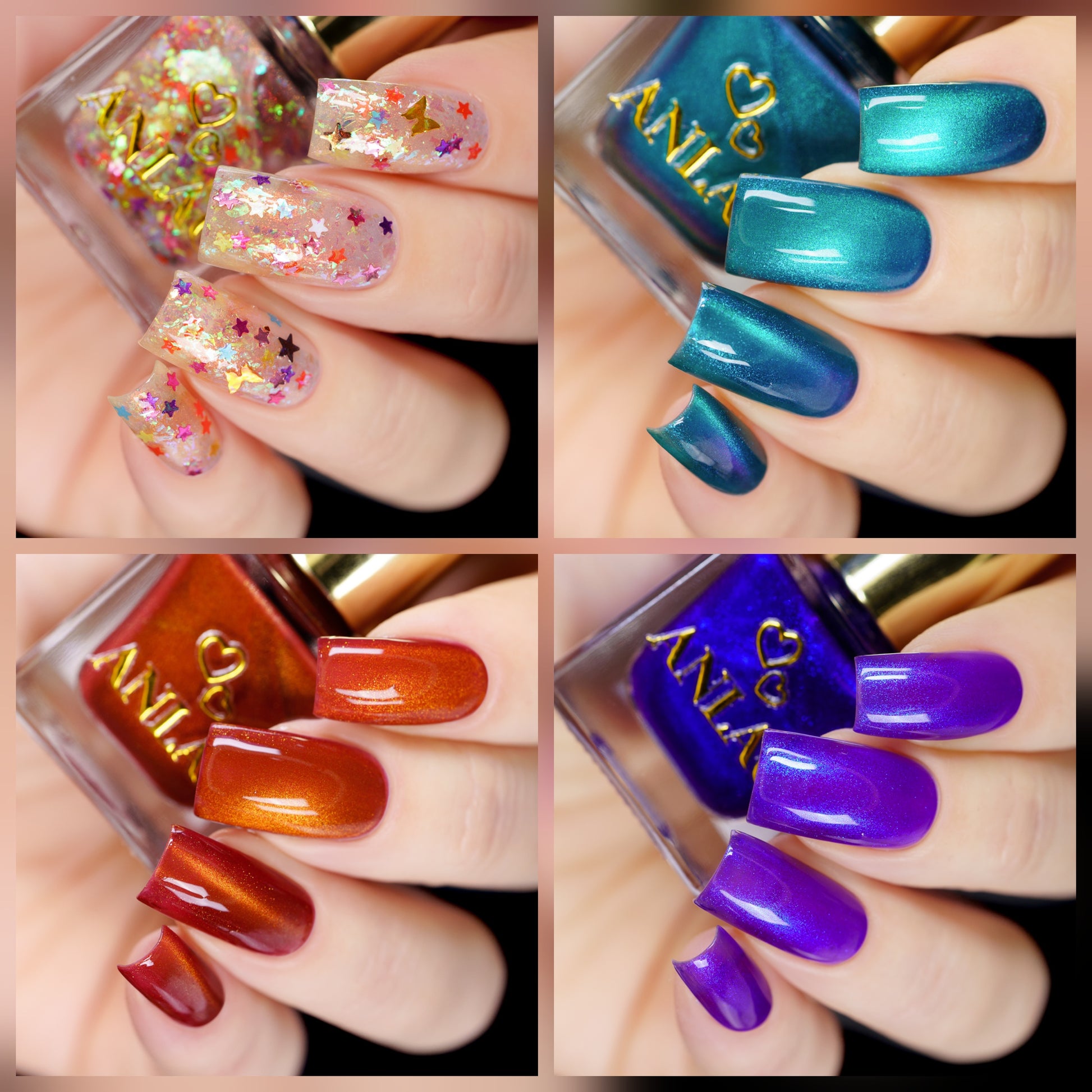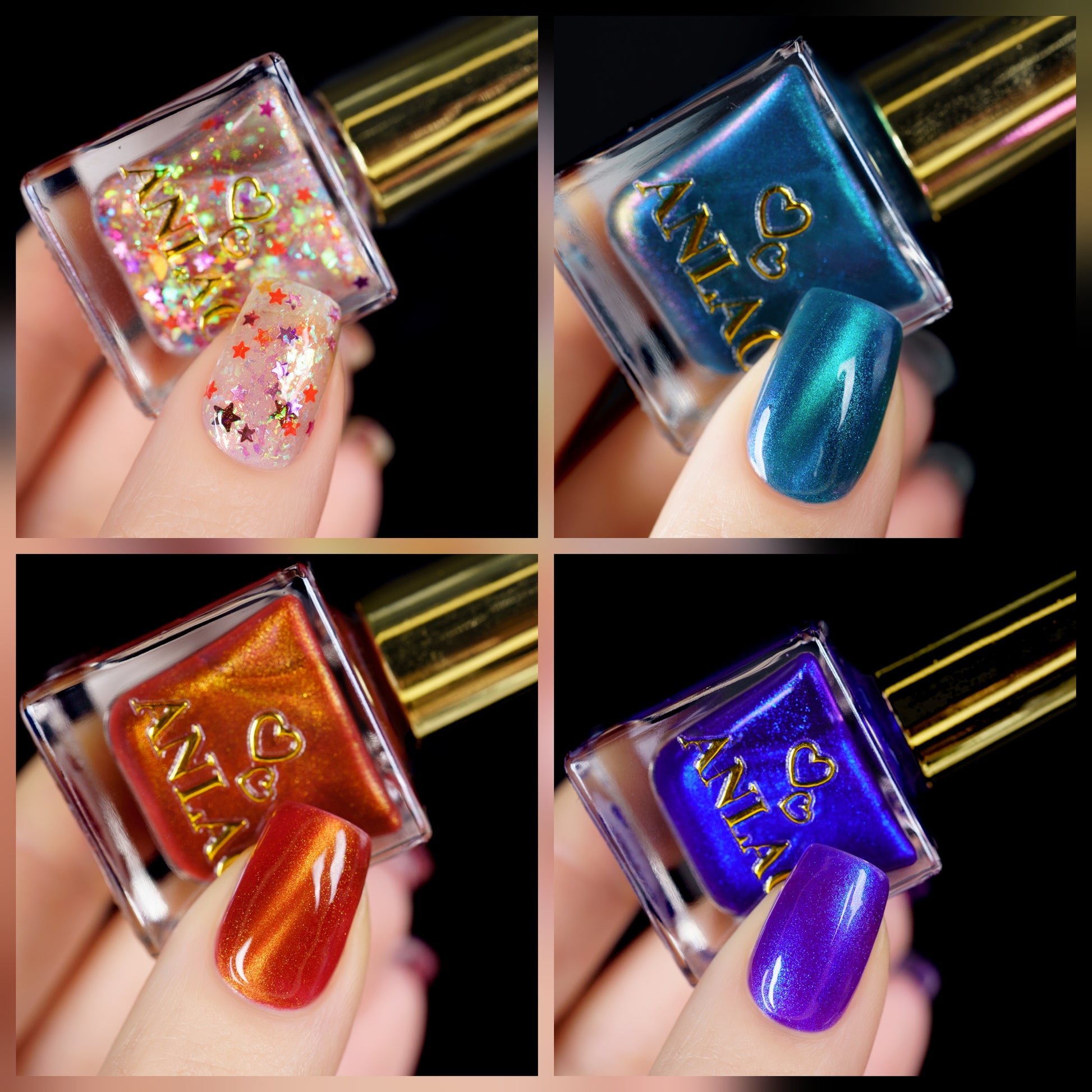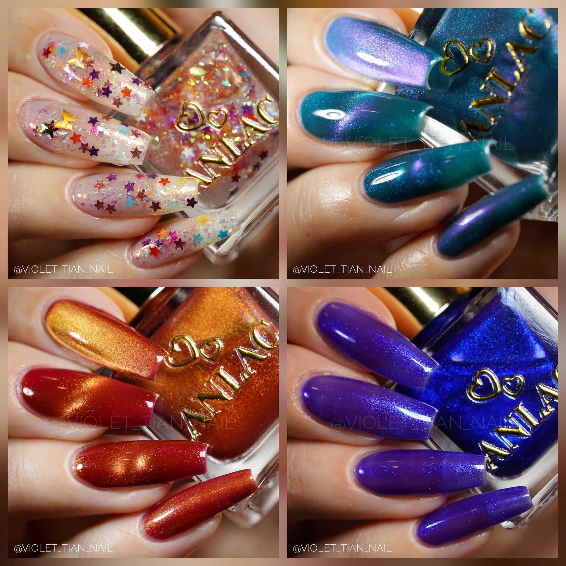 - Fireworks - It's a transparent base one with various colors of star glitters, holo gold butterfly glitter, green-blue-purple flakes and red-orange shimmer.