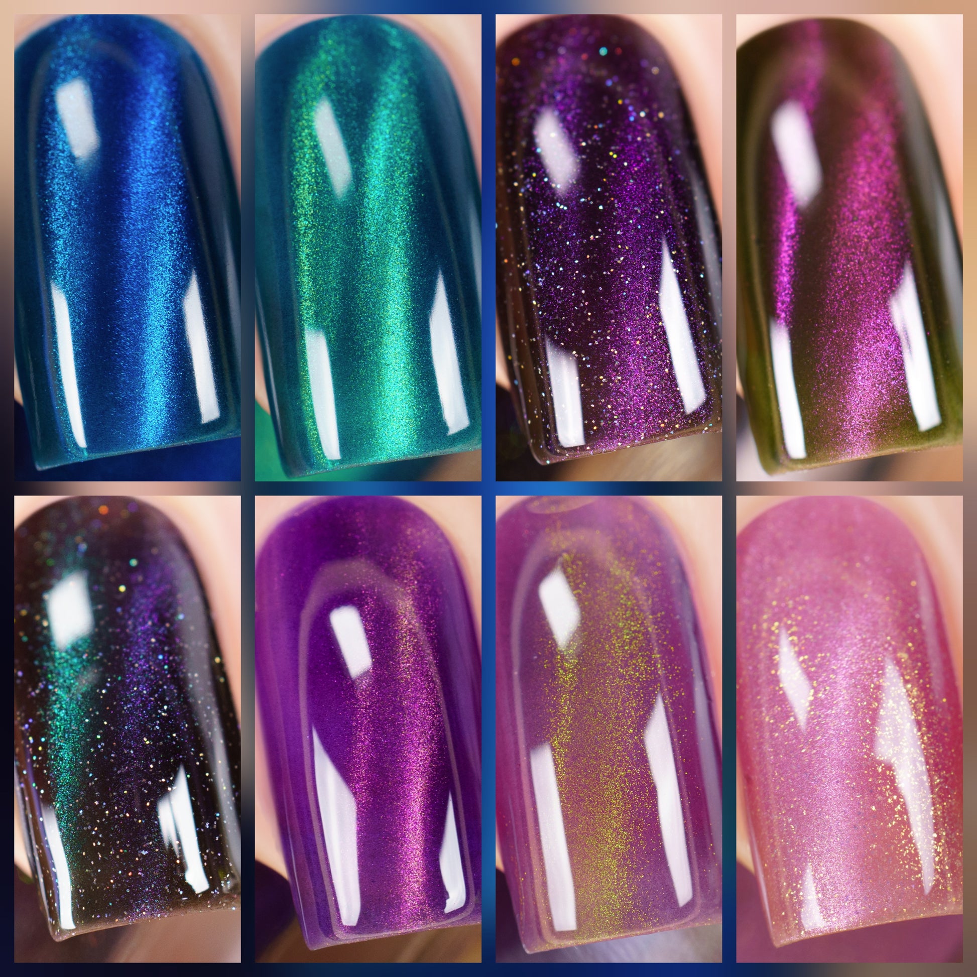 Leprieur’s Glory (magnetic): Blue base with cyan-green-blue fine-particle magnetic shimmer