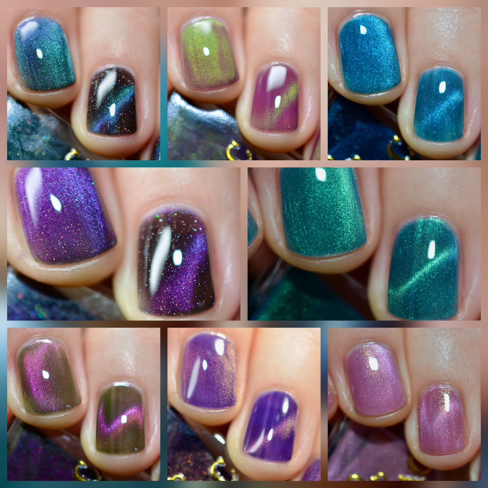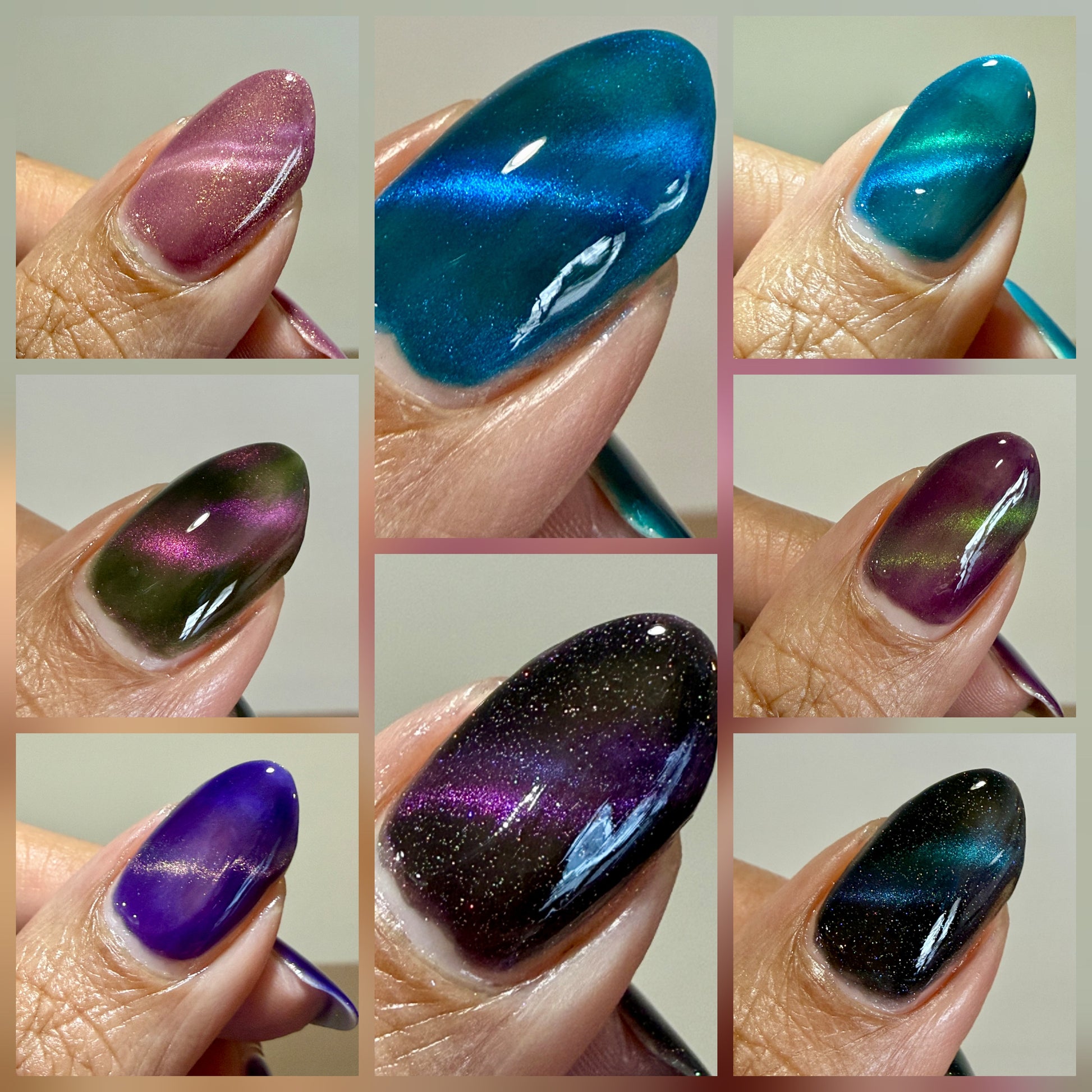 Hesperis Eighty-Eight (magnetic): Deep green base with purple-pink-green fine-particle magnetic shimmer