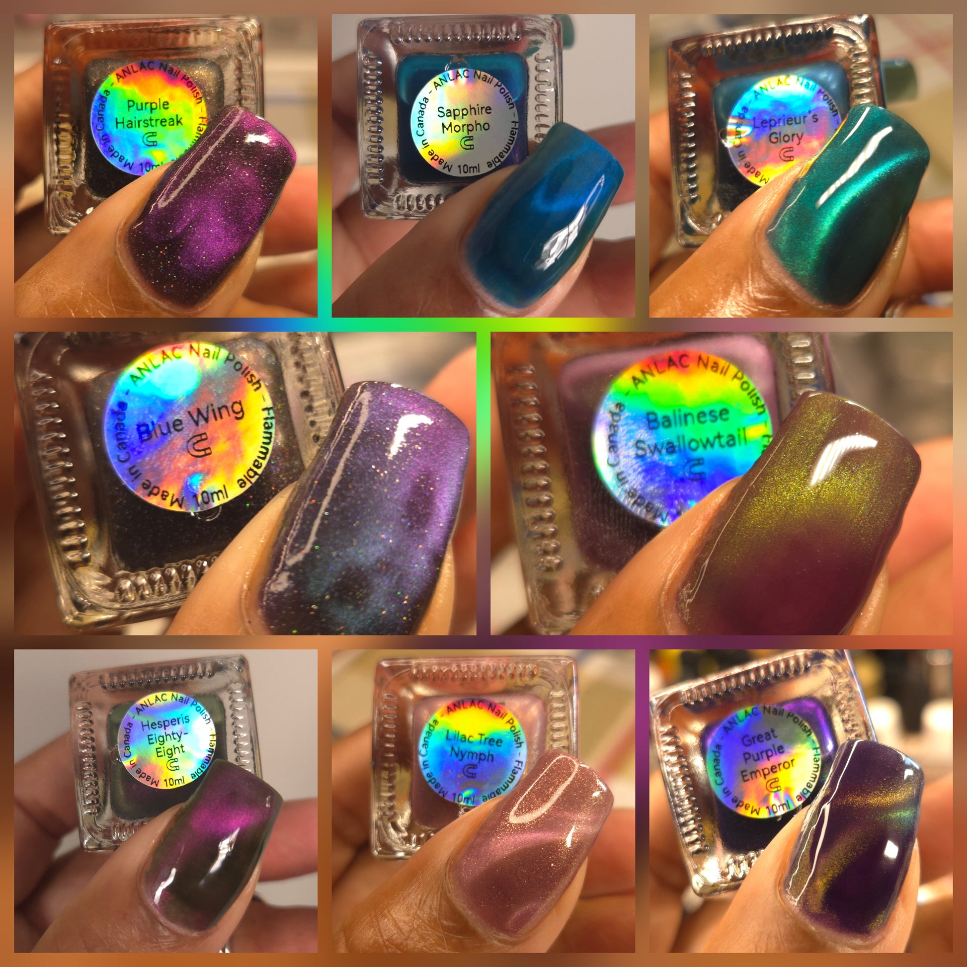 Great Purple Emperor (magnetic): Purple base with red-orange-green fine-particle magnetic shimmer