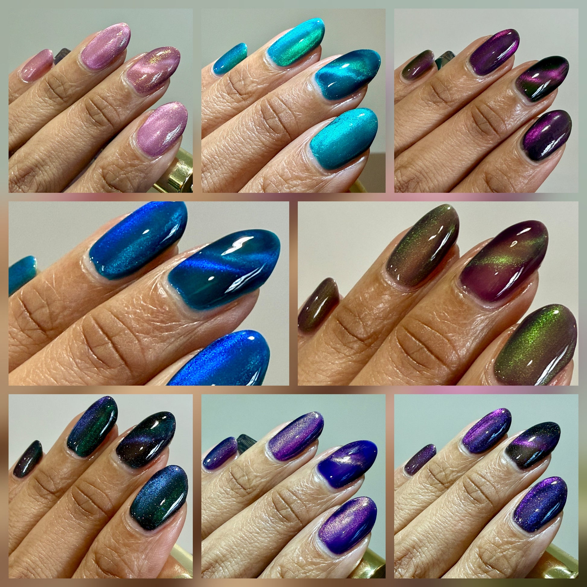 Lilac Tree Nymph(magnetic): Lilac base with gold shimmer and pink fine-particle magnetic shimmer