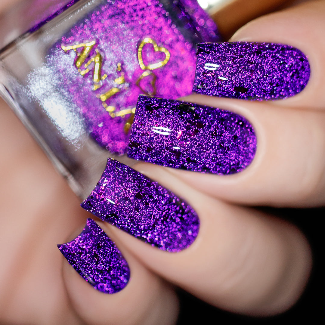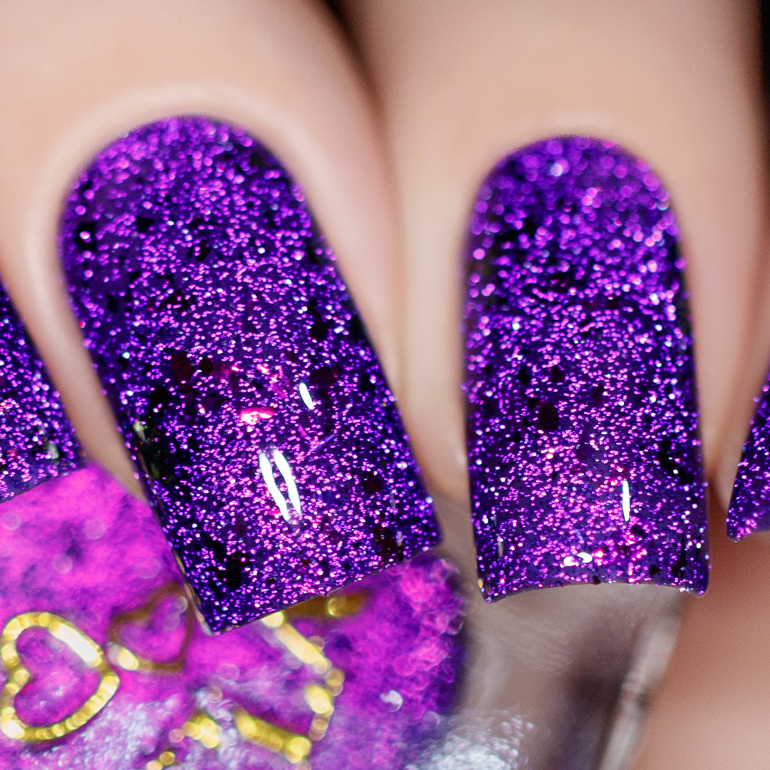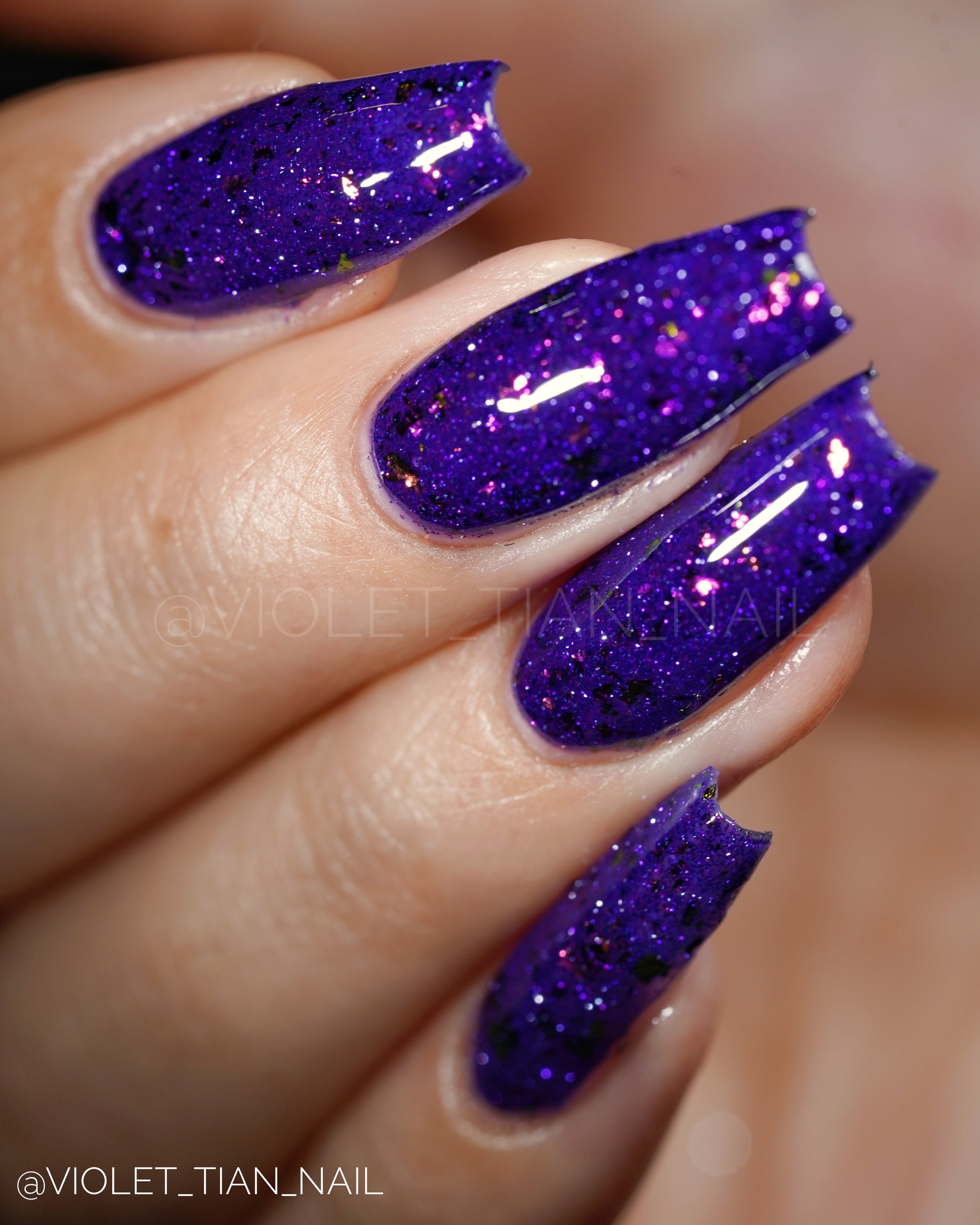 - Cranberry Plum - It’s a purple one with pink-gold-green chameleon flakes and purple reflective glitter.