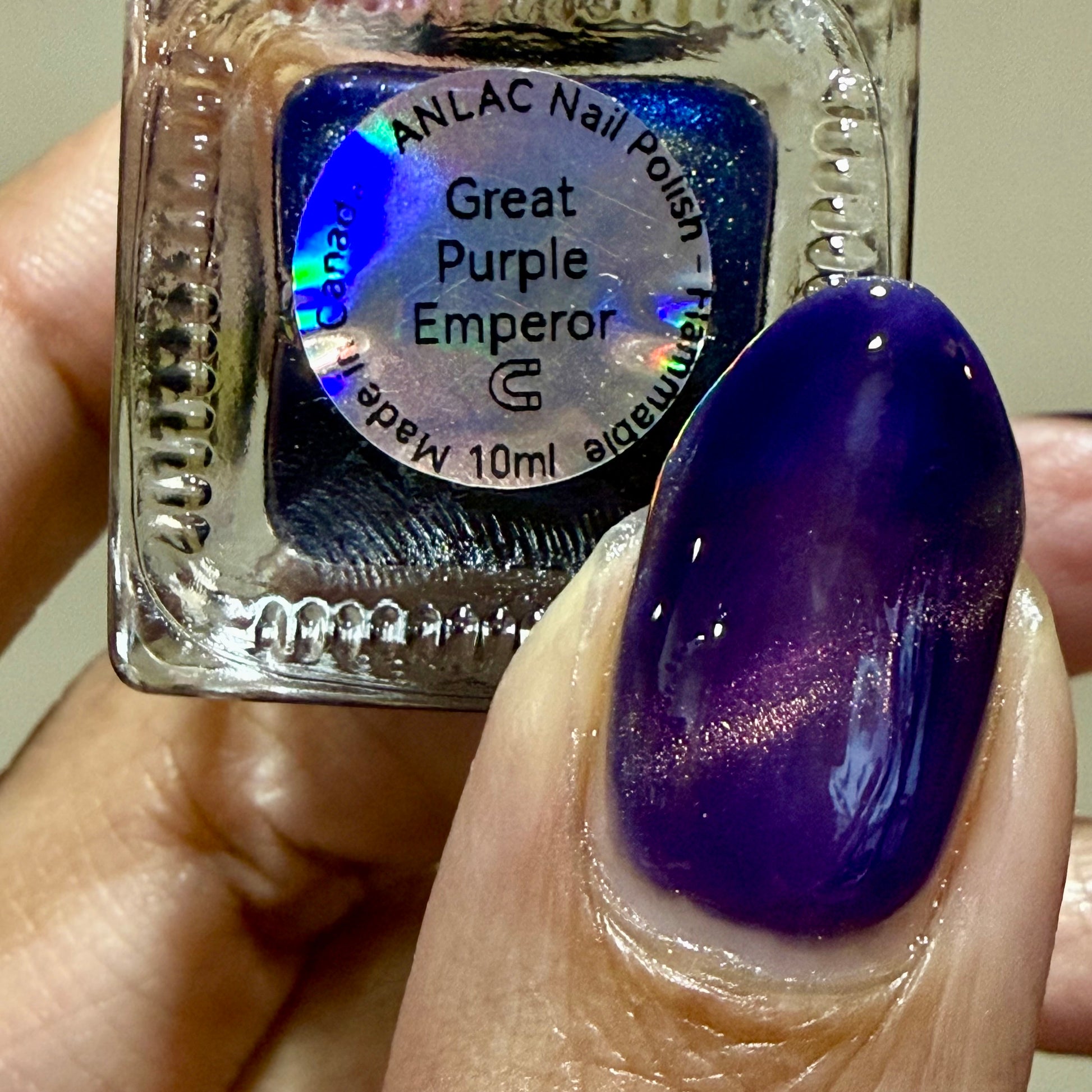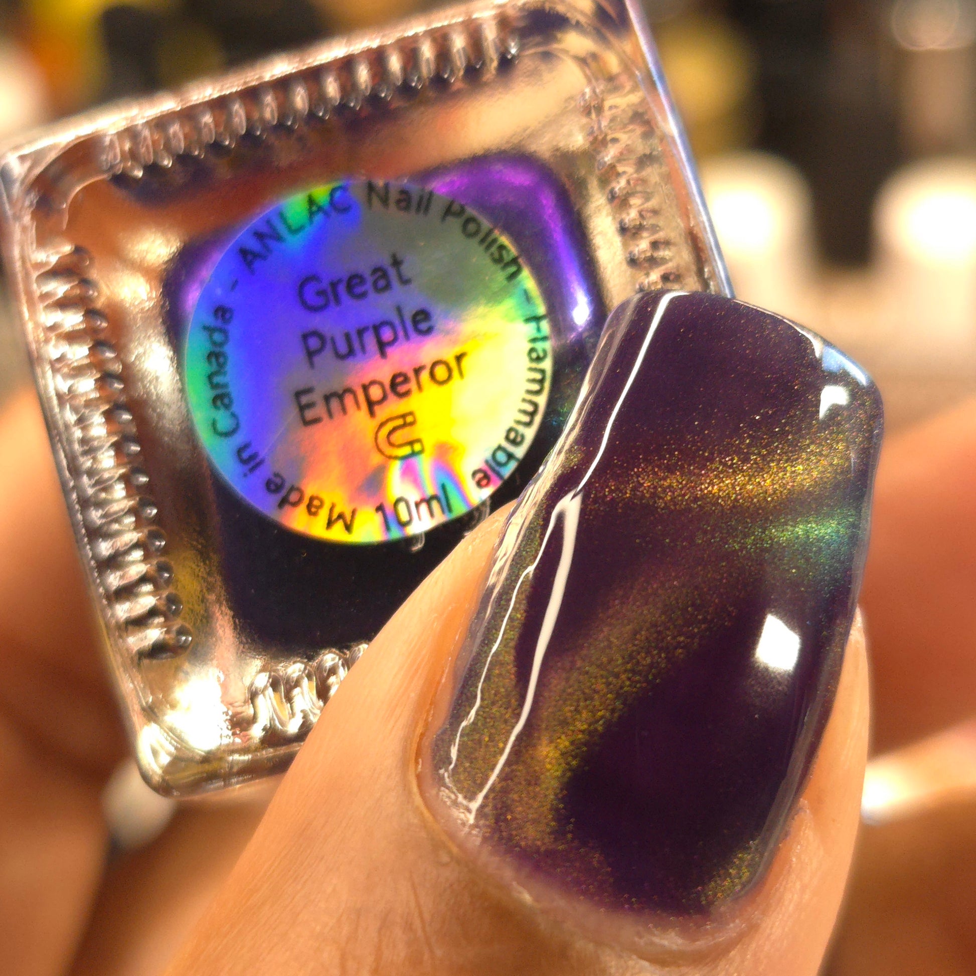 Great Purple Emperor (magnetic):Purple base with red-orange-green fine-particle magnetic shimmer