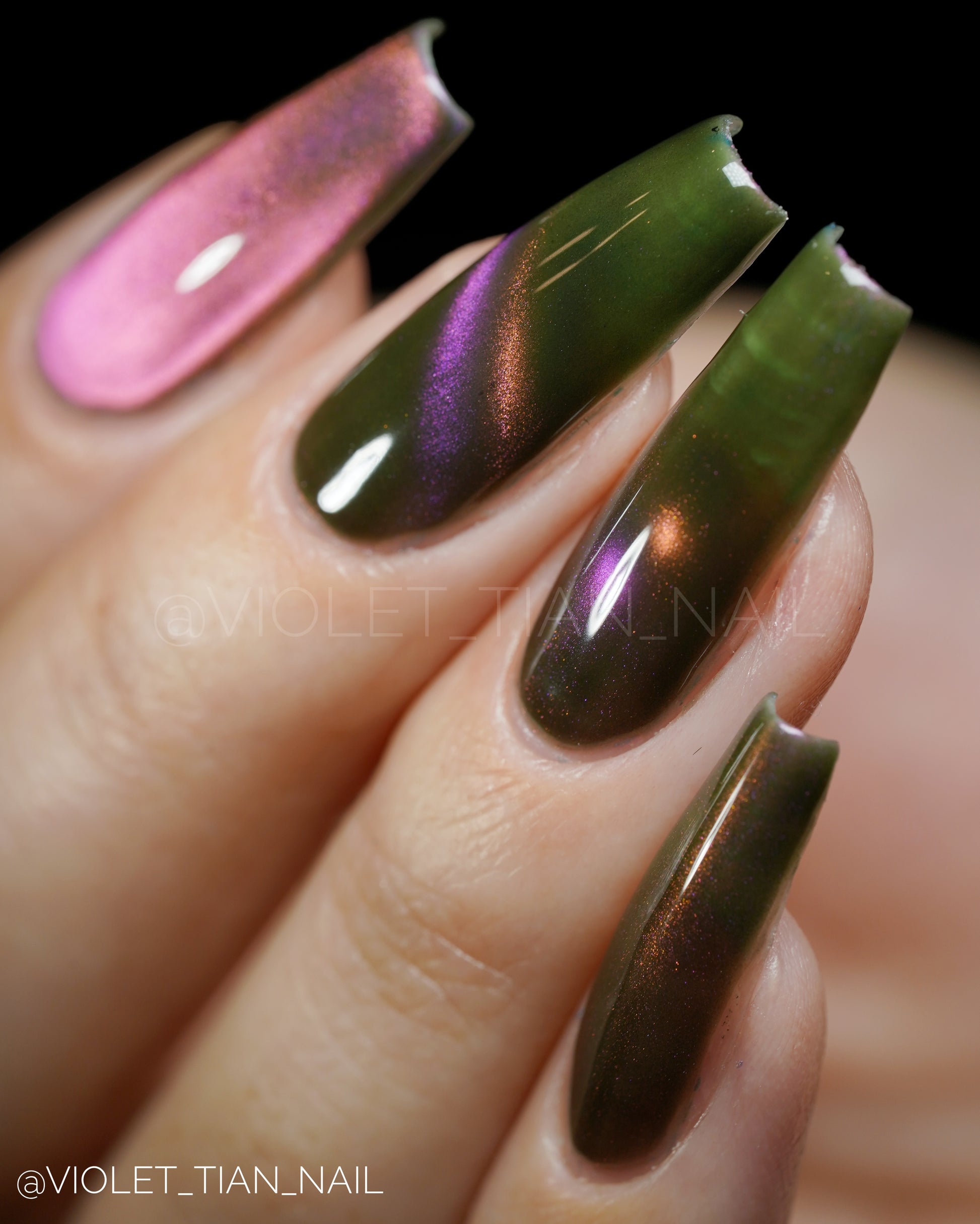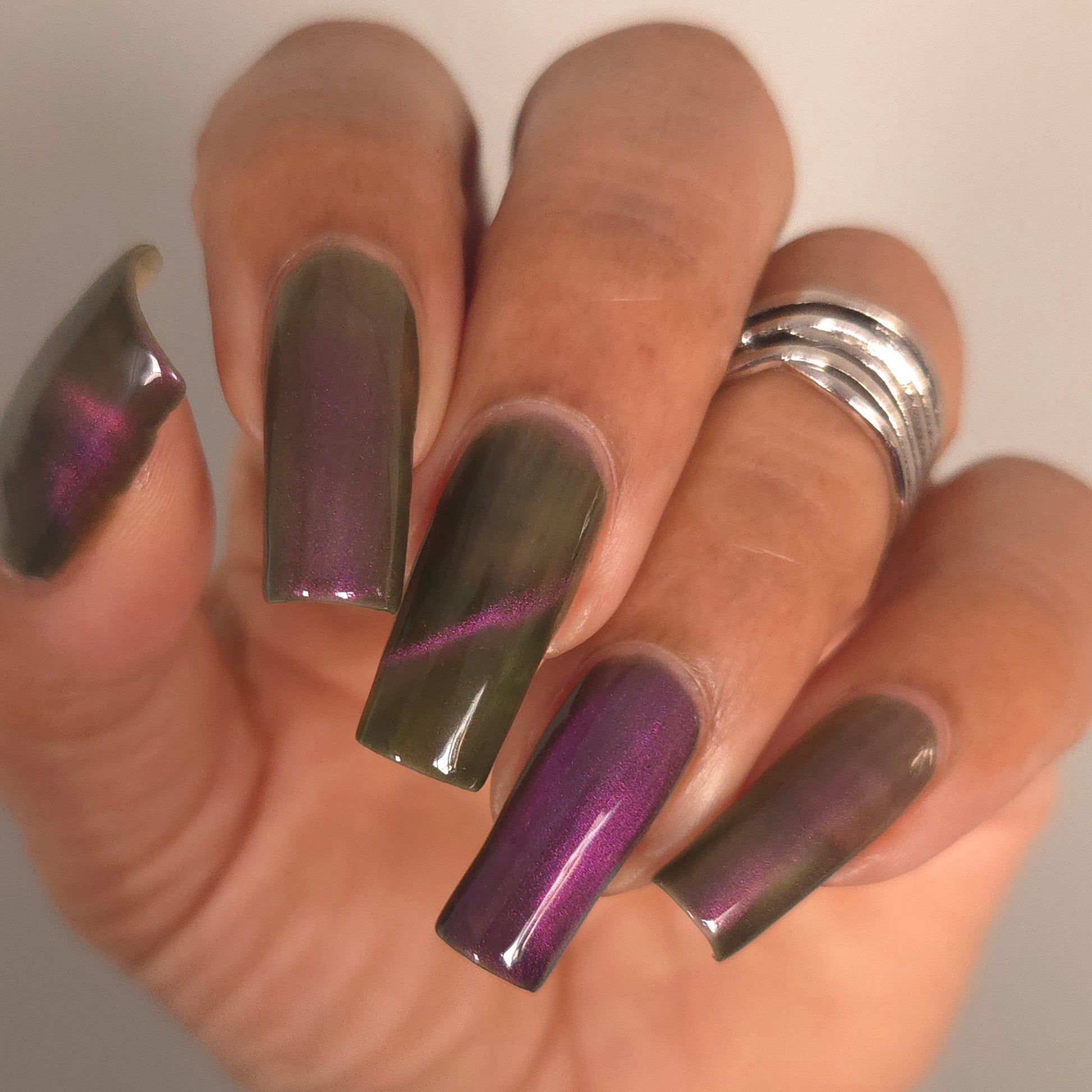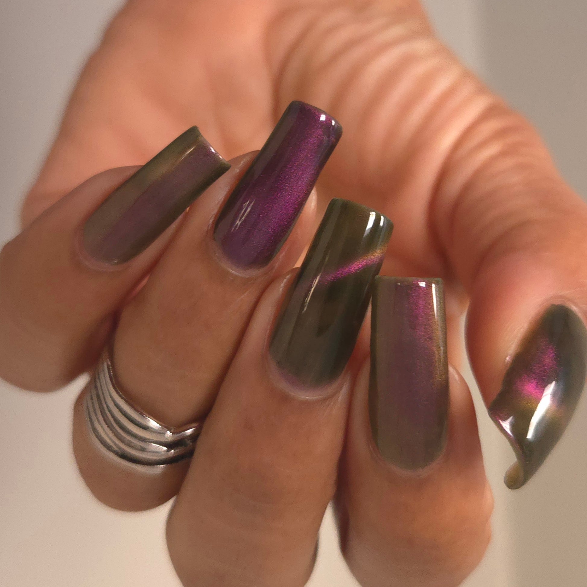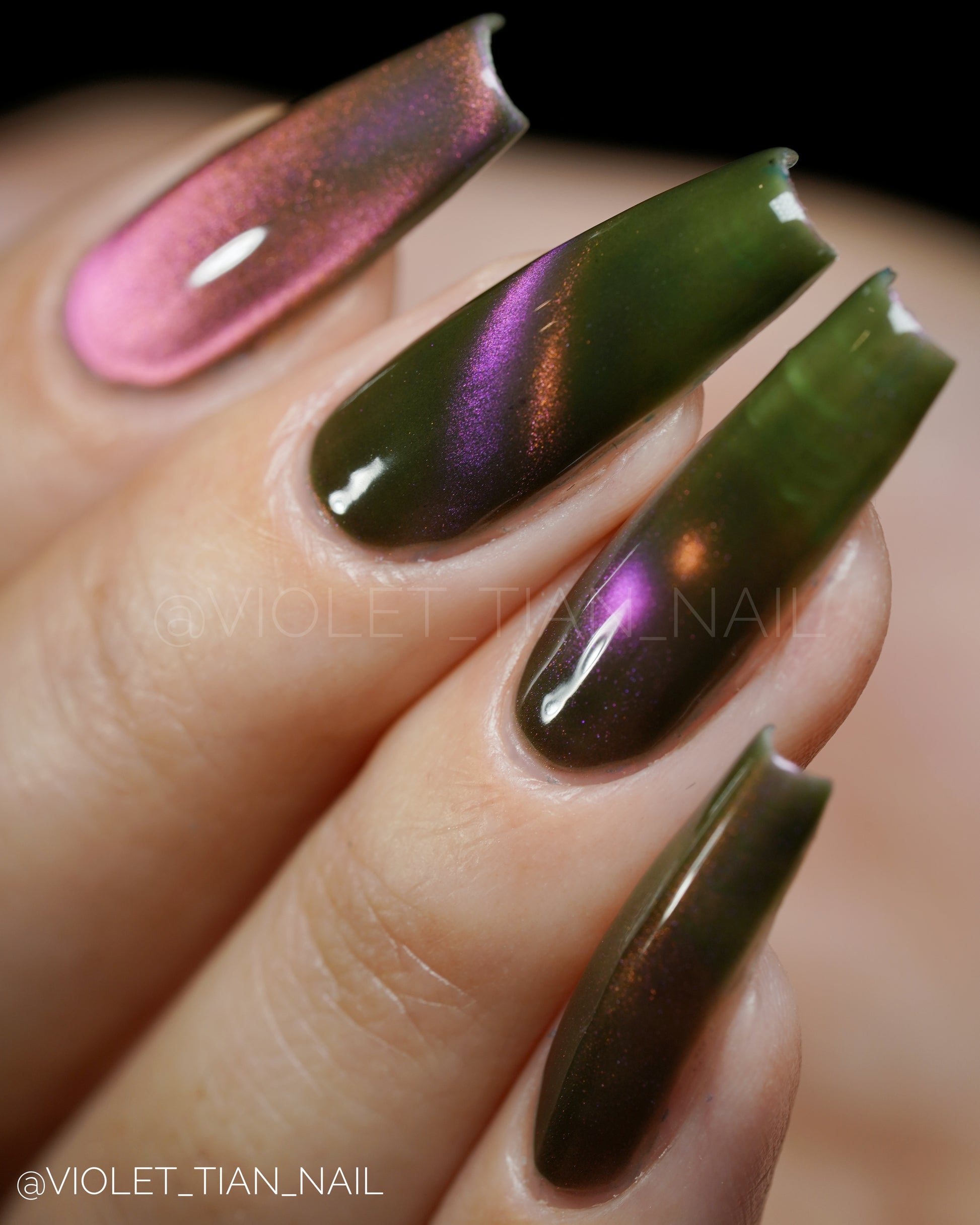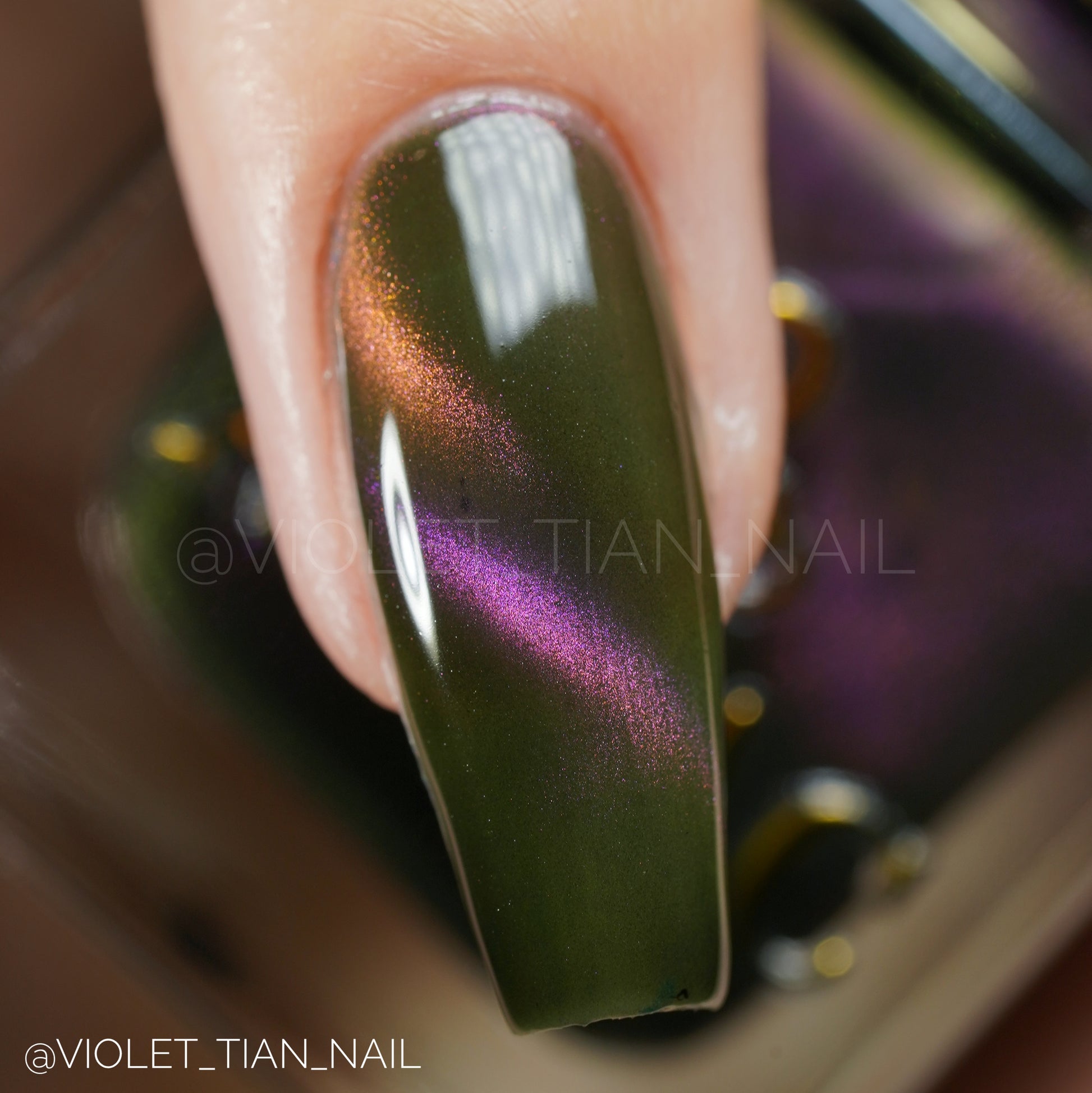 Hesperis Eighty-Eight (magnetic):Deep green base with purple-pink-green fine-particle magnetic shimmer