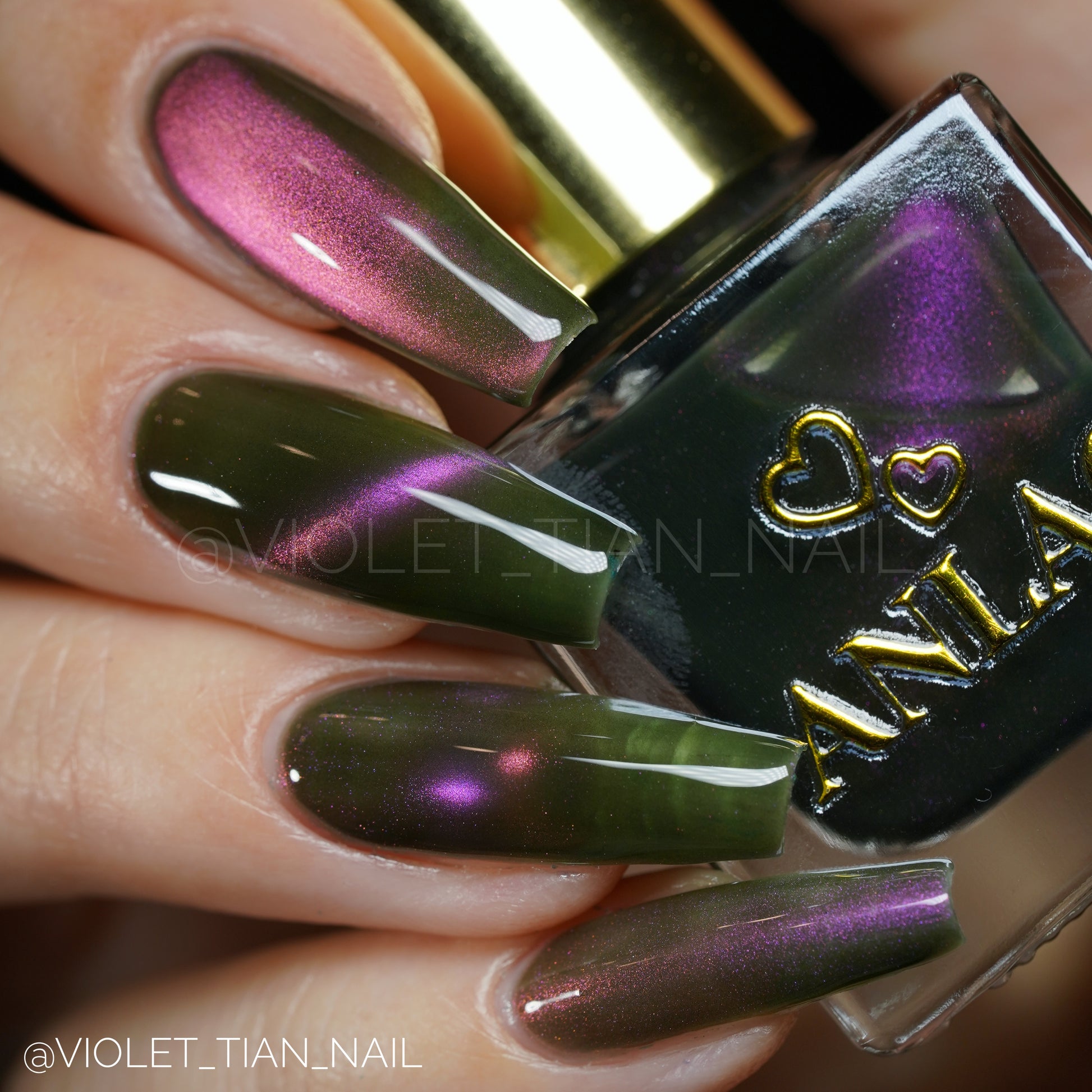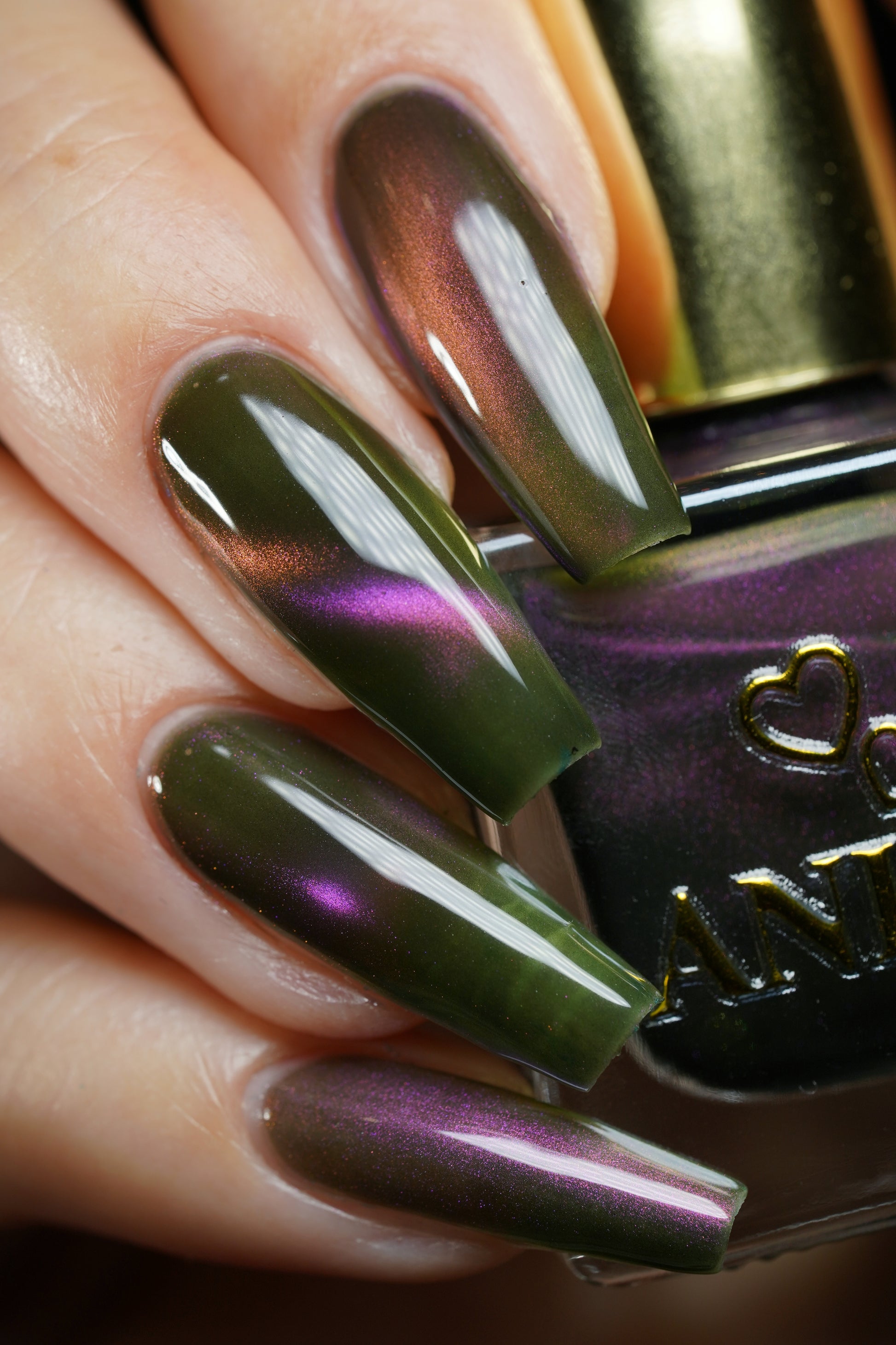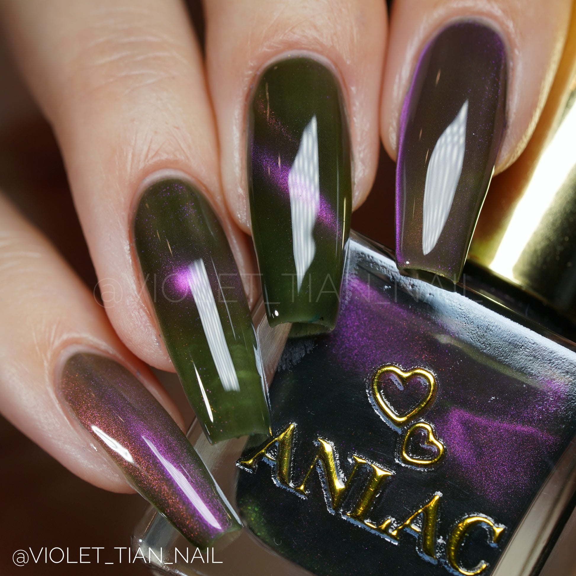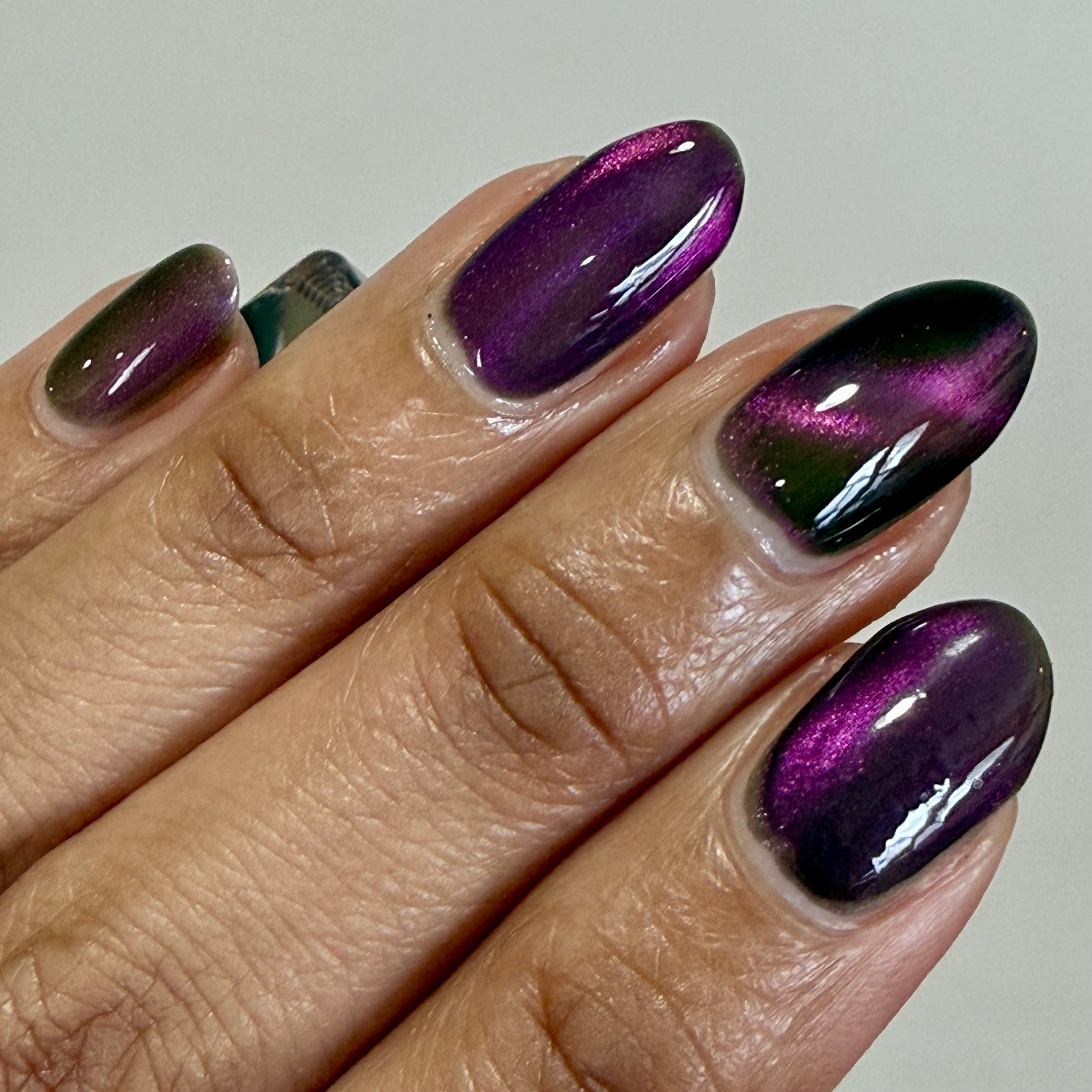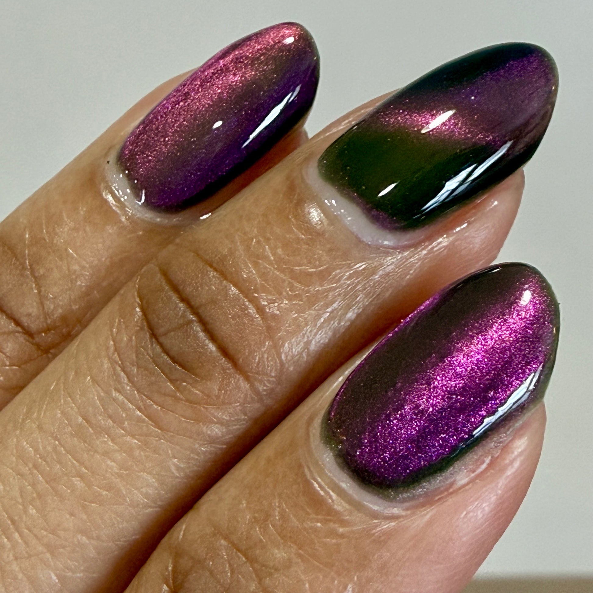 Hesperis Eighty-Eight (magnetic):Deep green base with purple-pink-green fine-particle magnetic shimmer