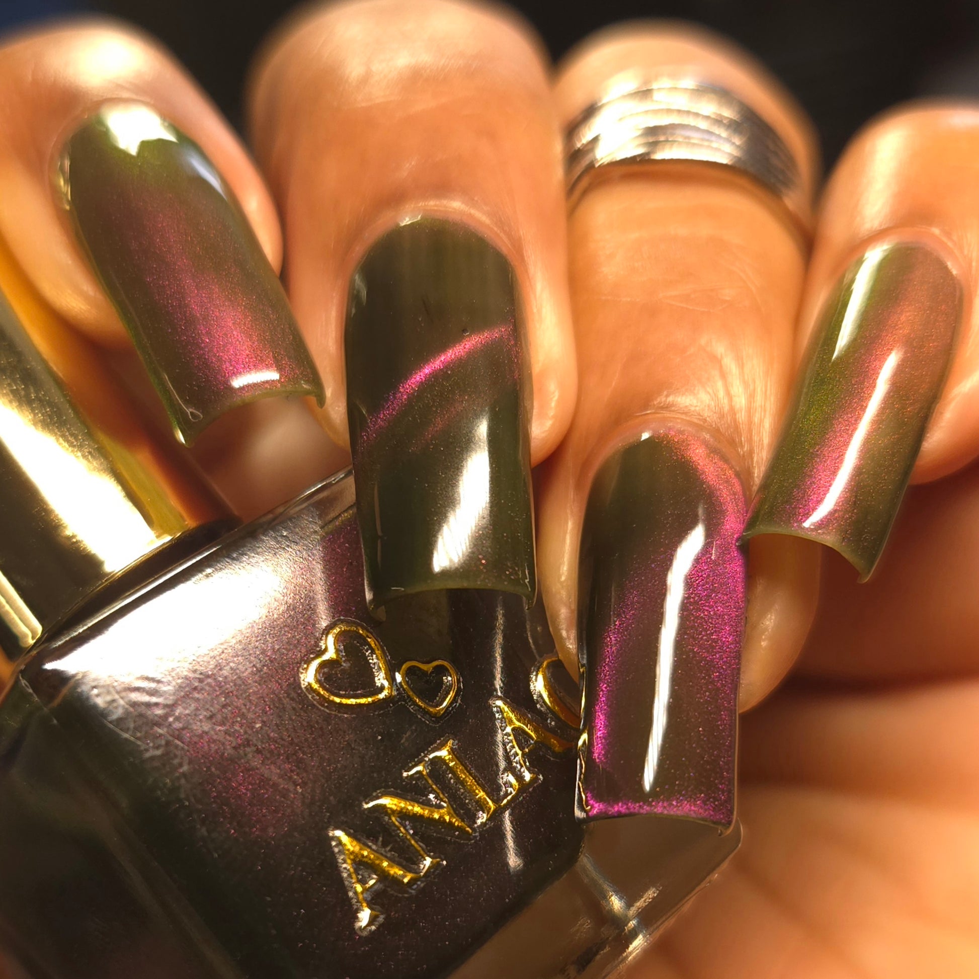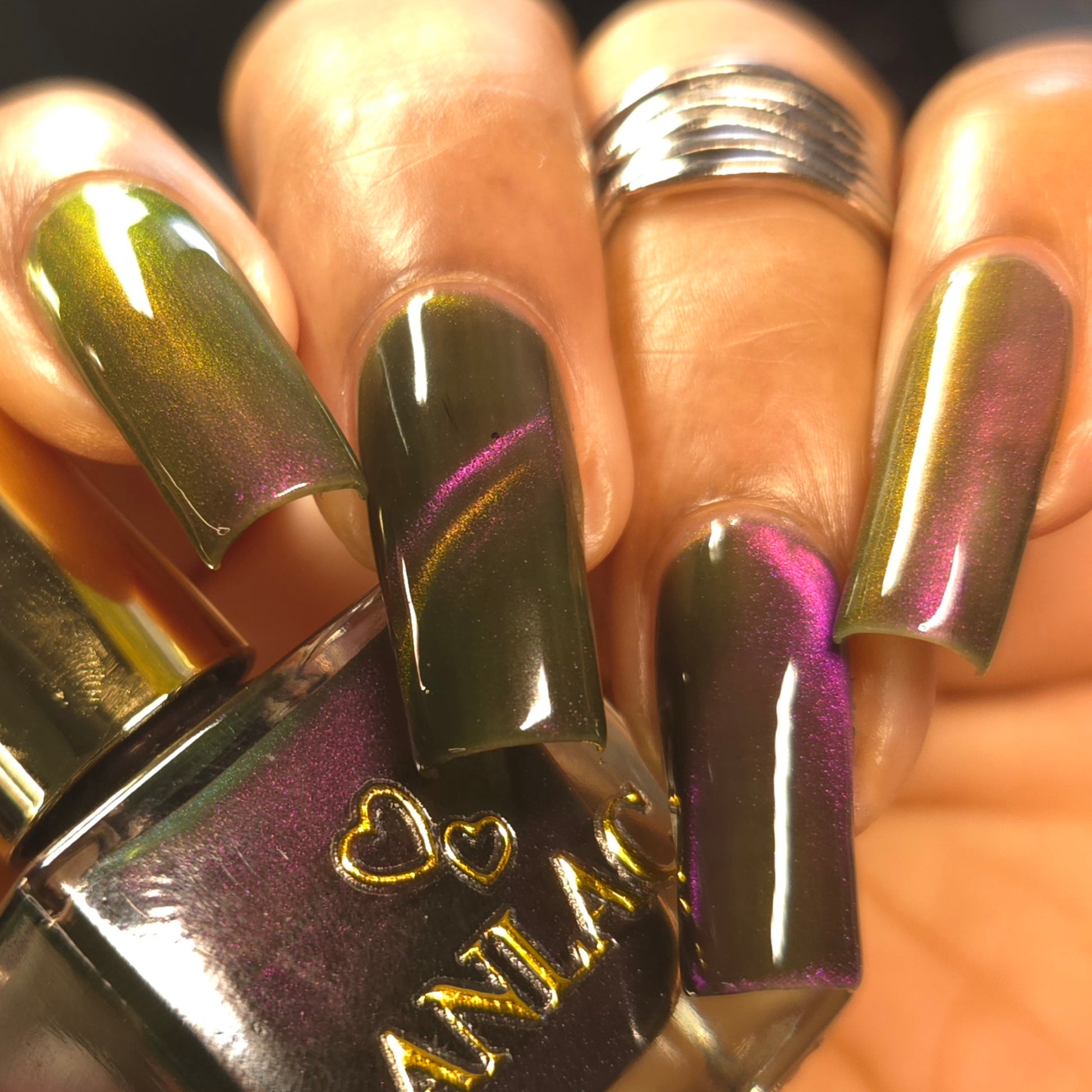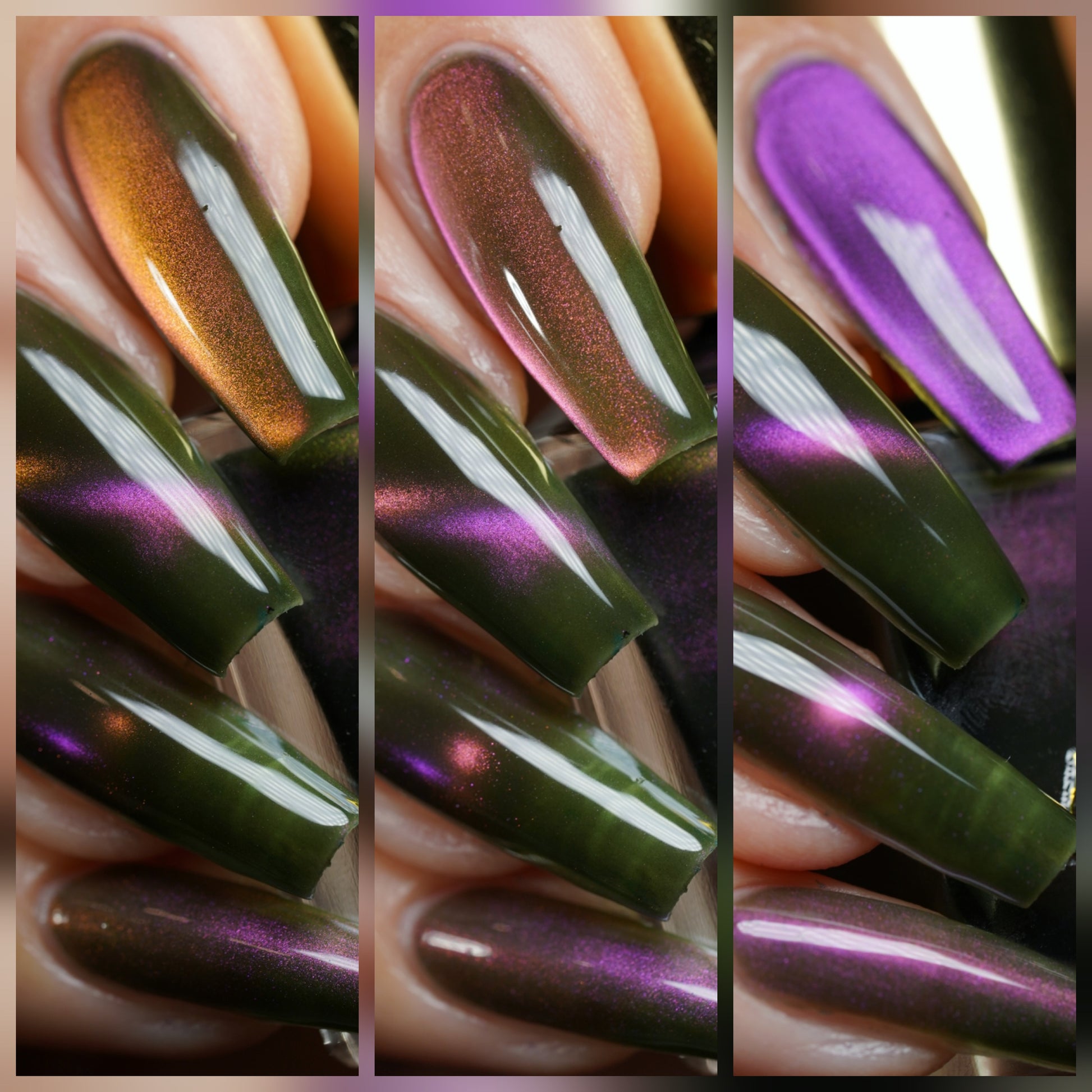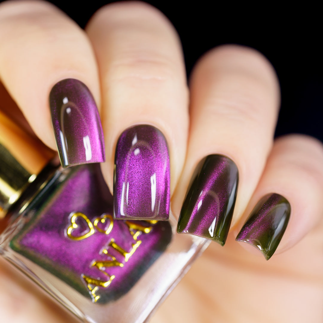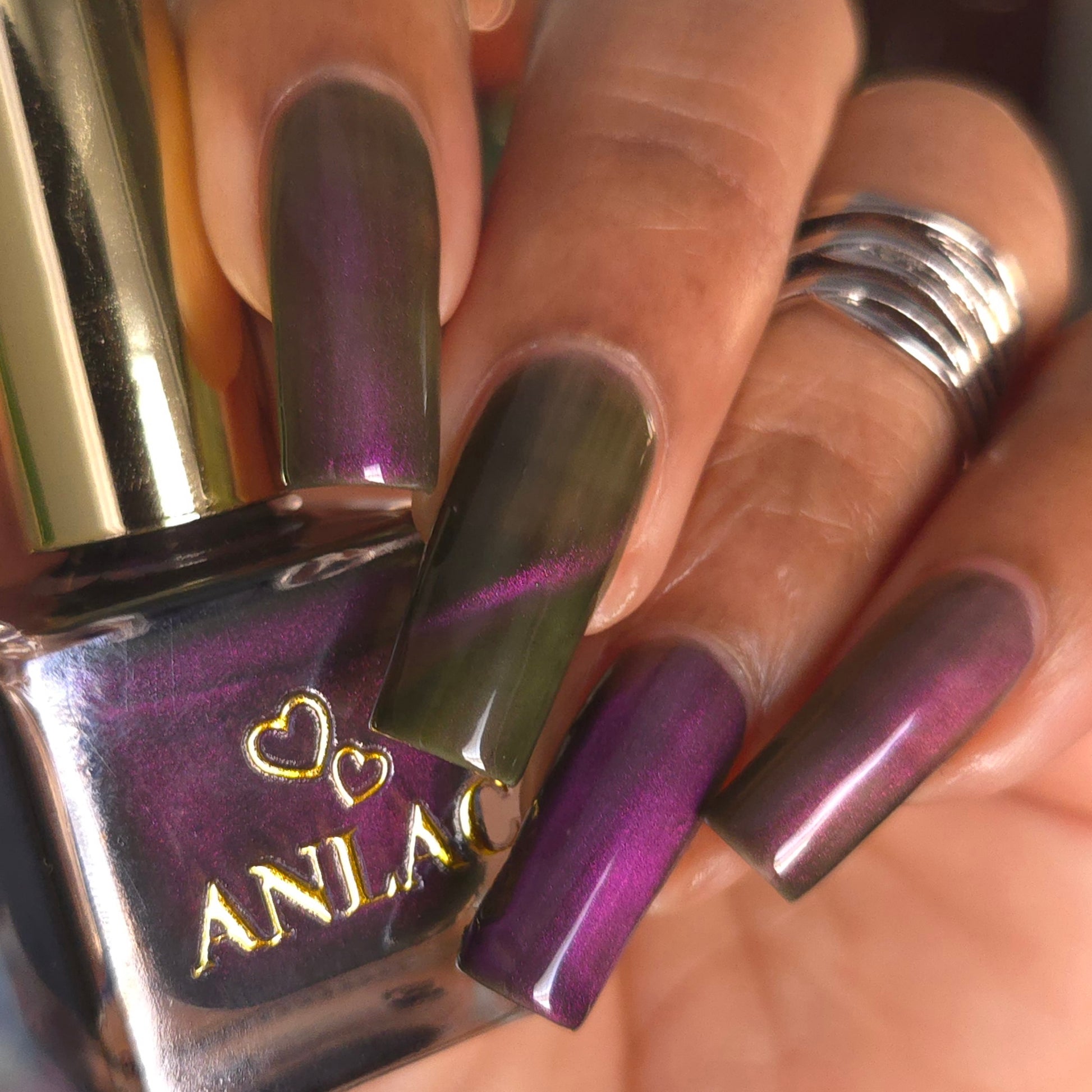Hesperis Eighty-Eight (magnetic):Deep green base with purple-pink-green fine-particle magnetic shimmer
