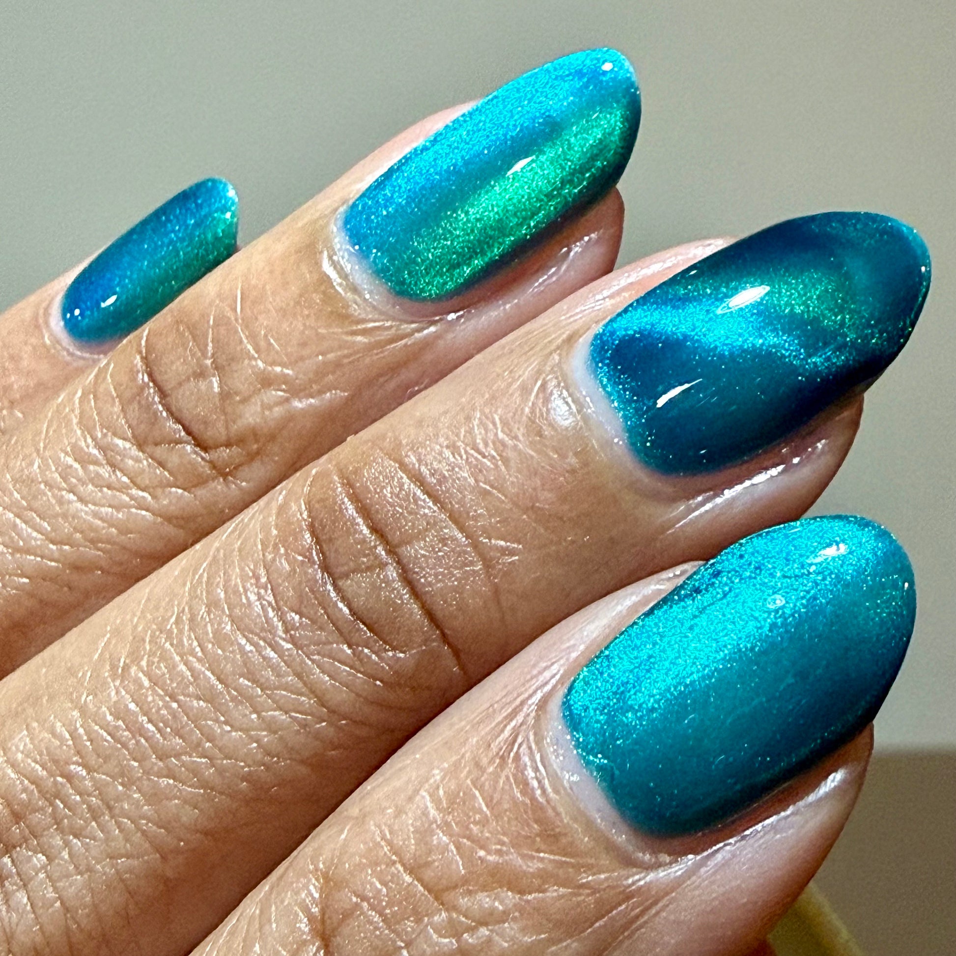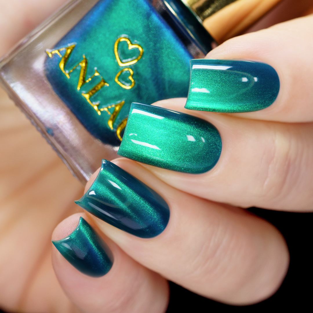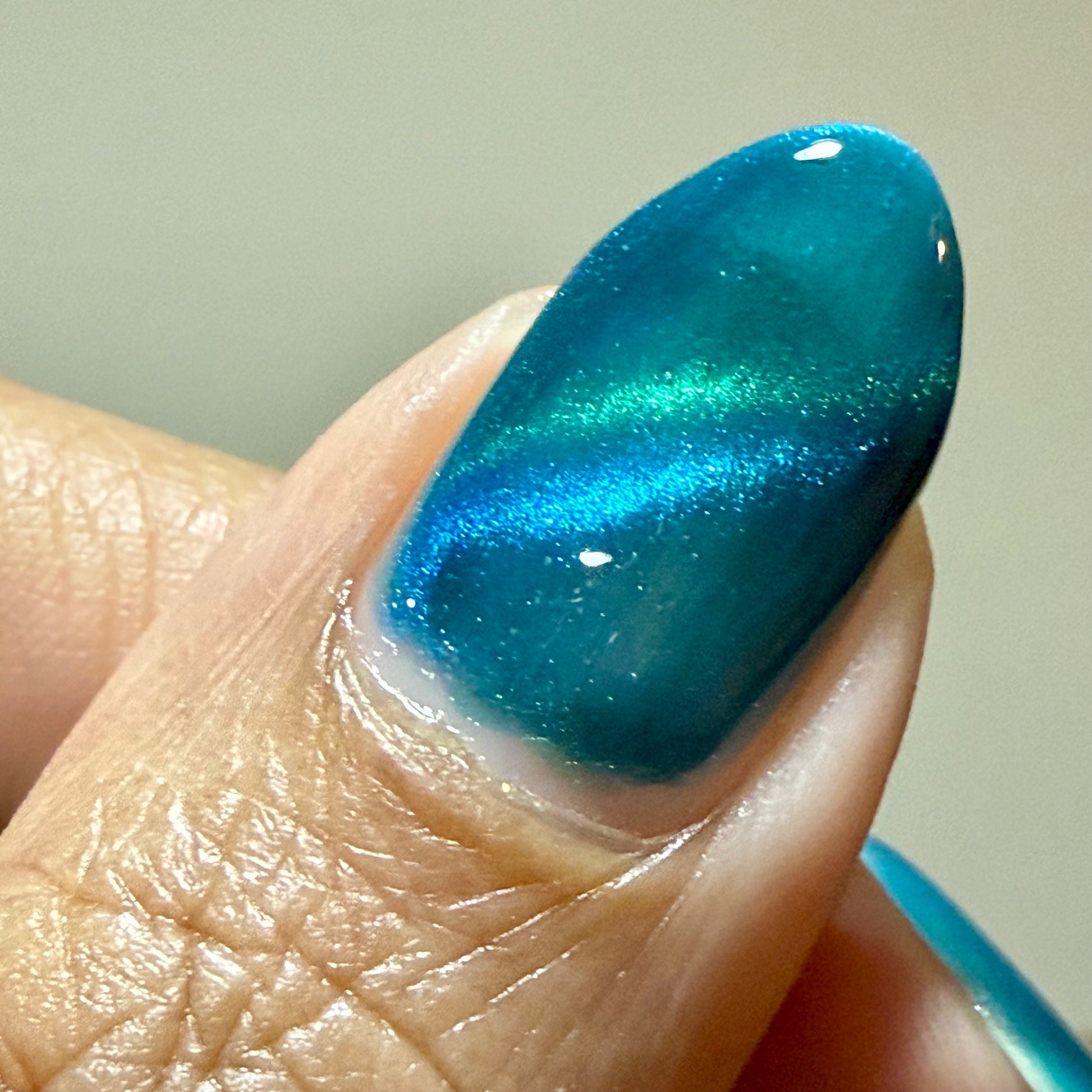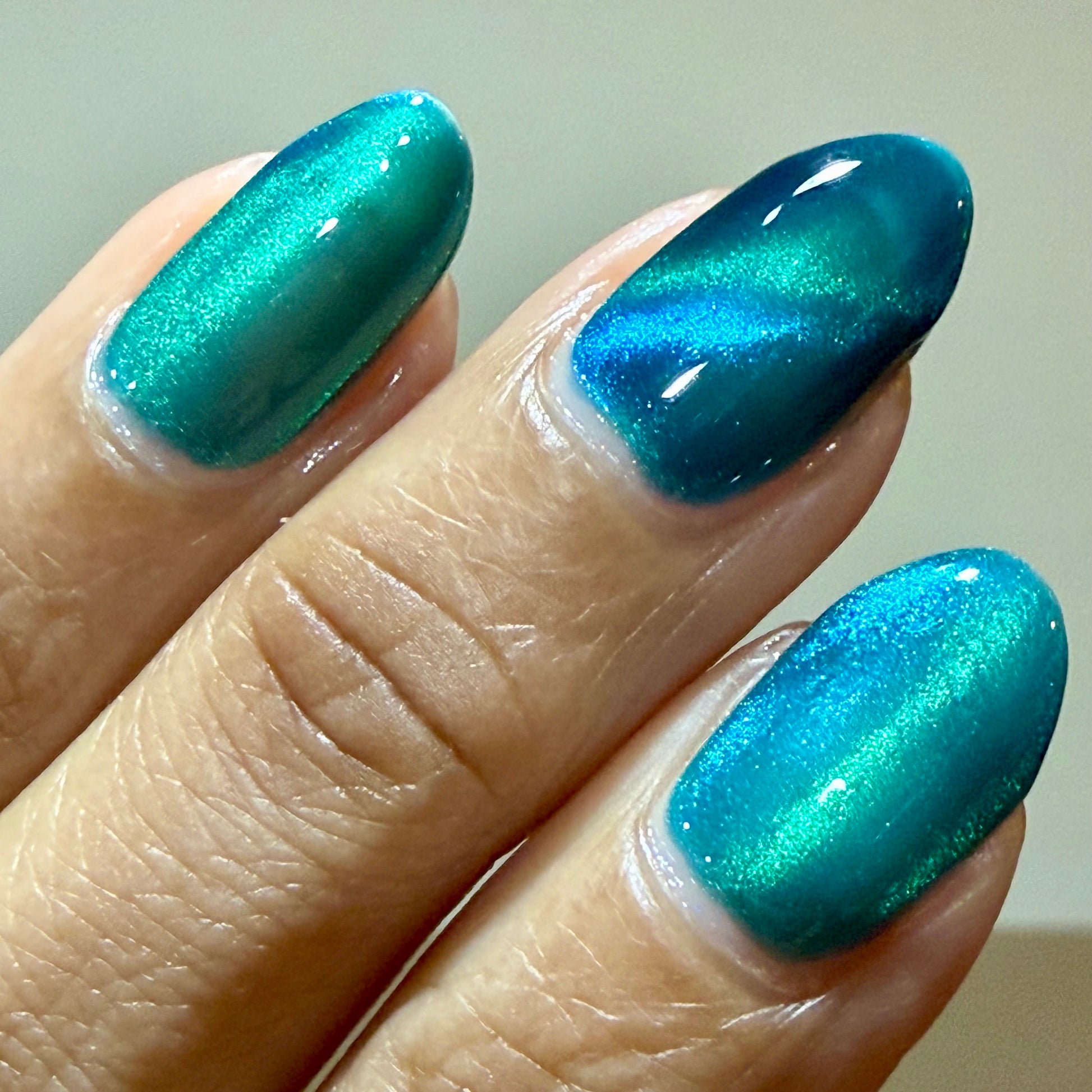Leprieur’s Glory (magnetic): Blue base with cyan-green-blue fine-particle magnetic shimmer