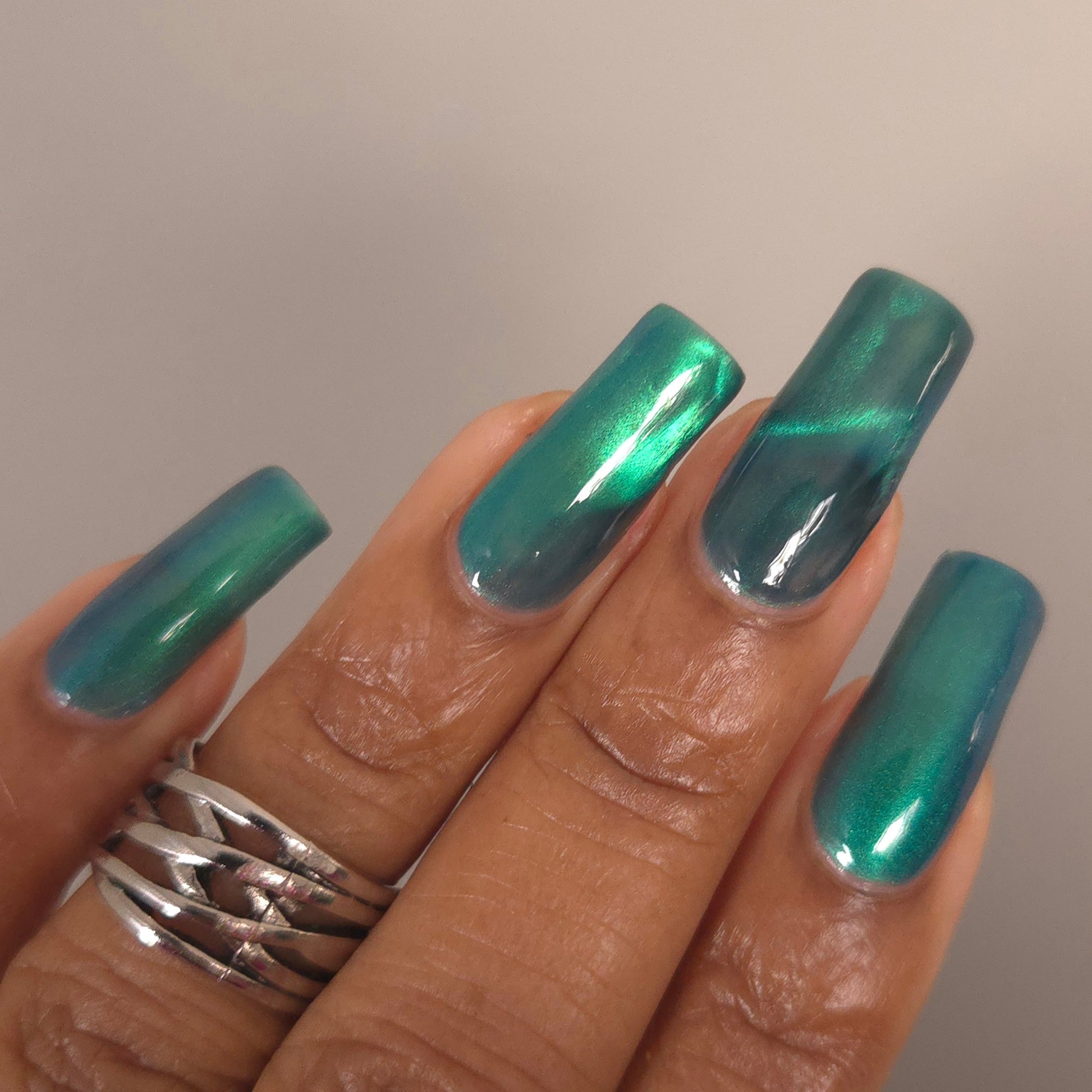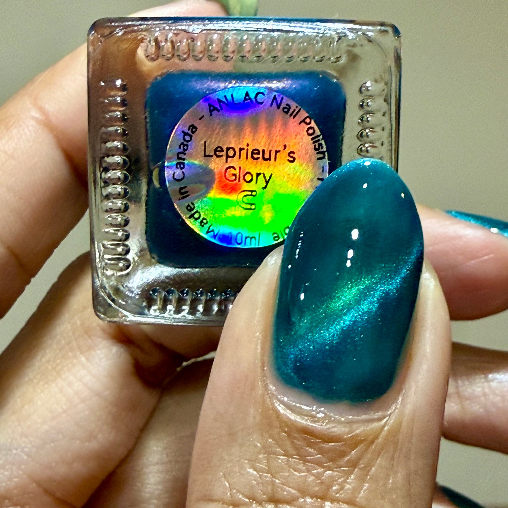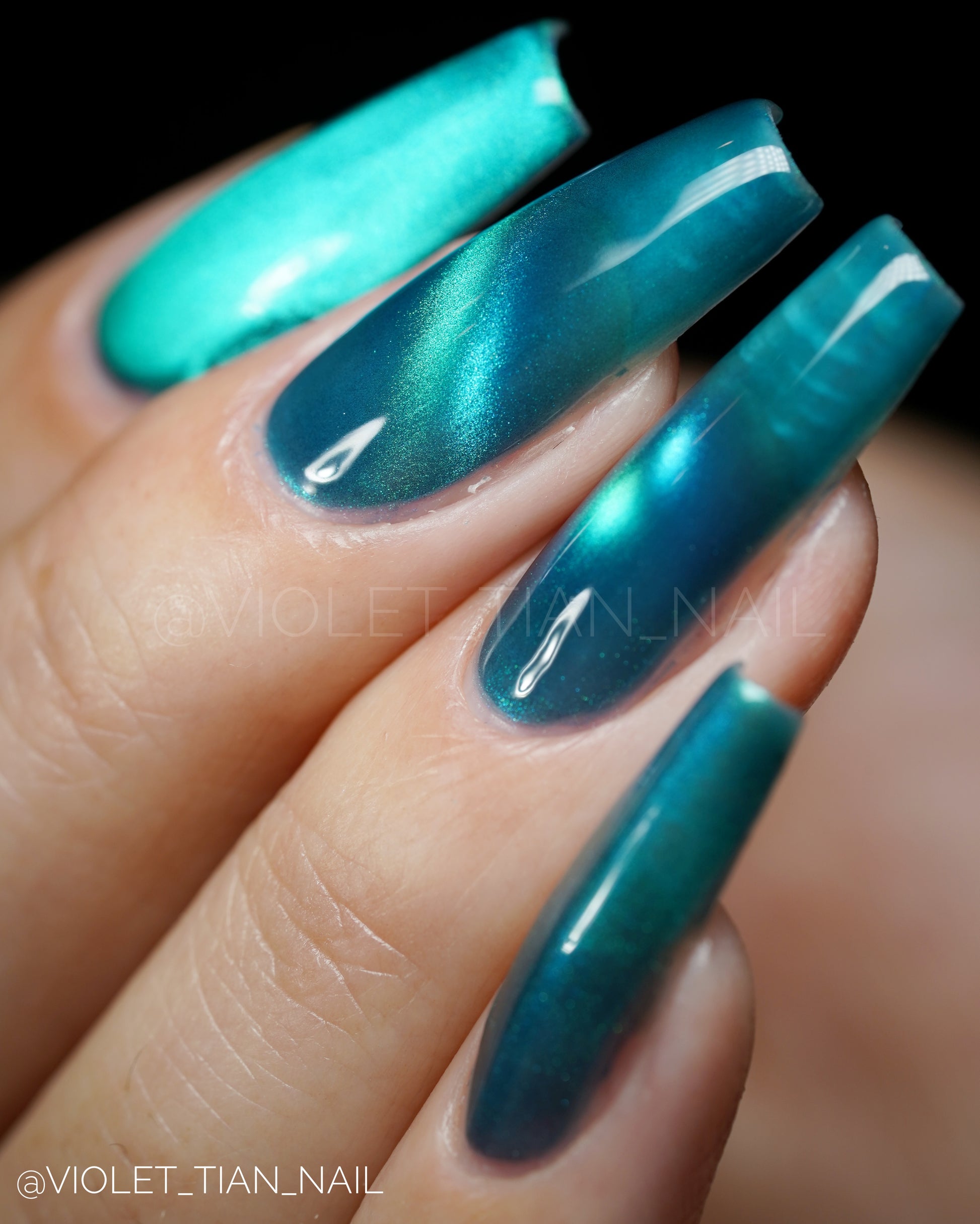 Leprieur’s Glory (magnetic): Blue base with cyan-green-blue fine-particle magnetic shimmer