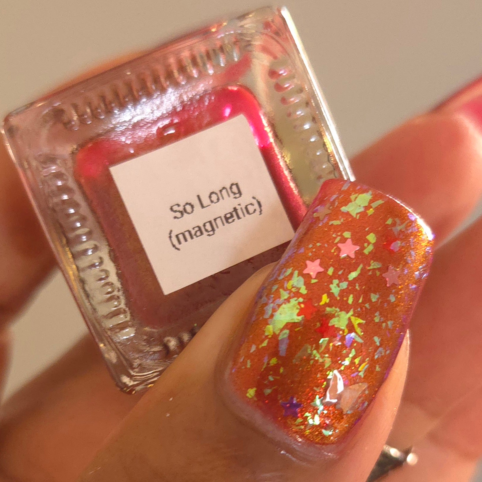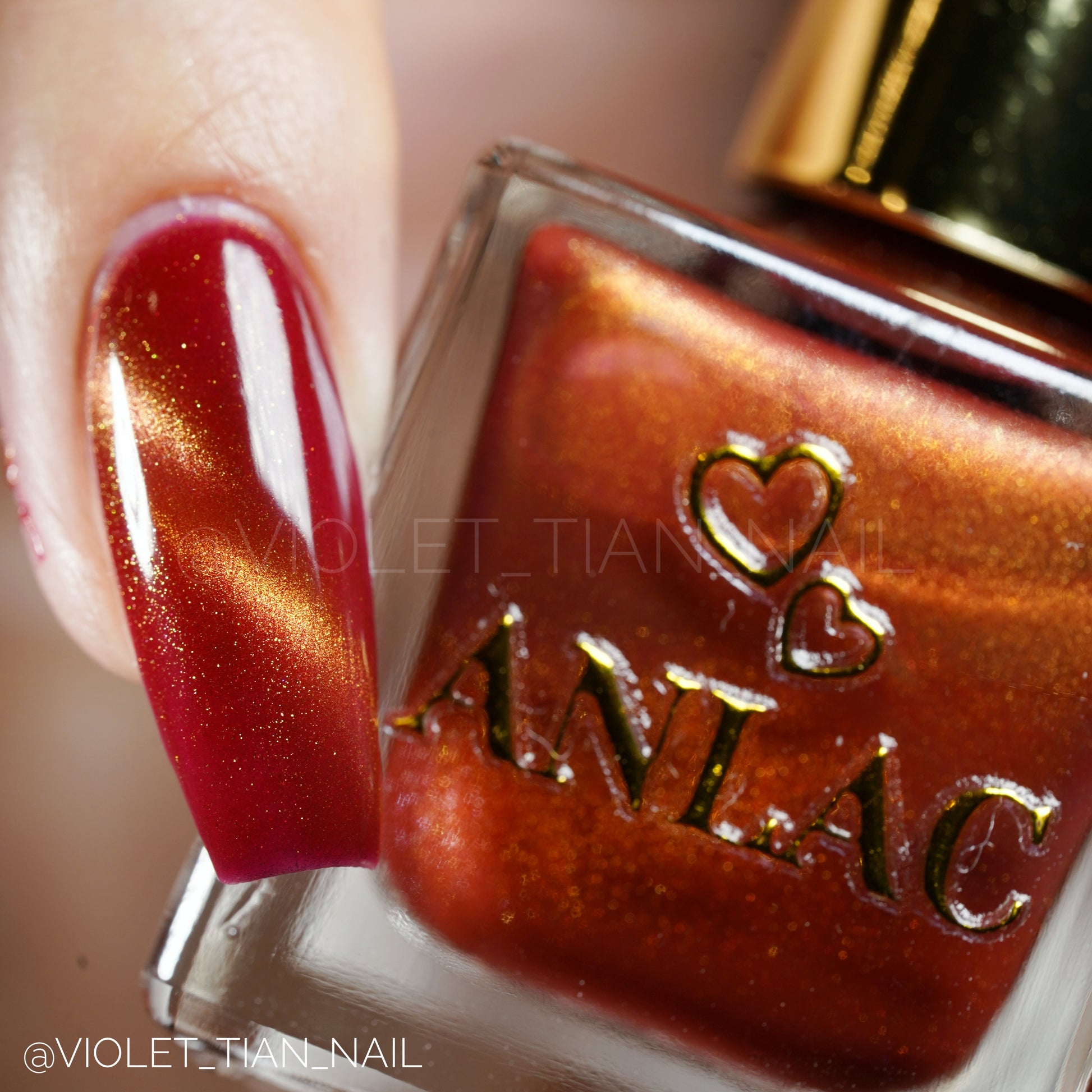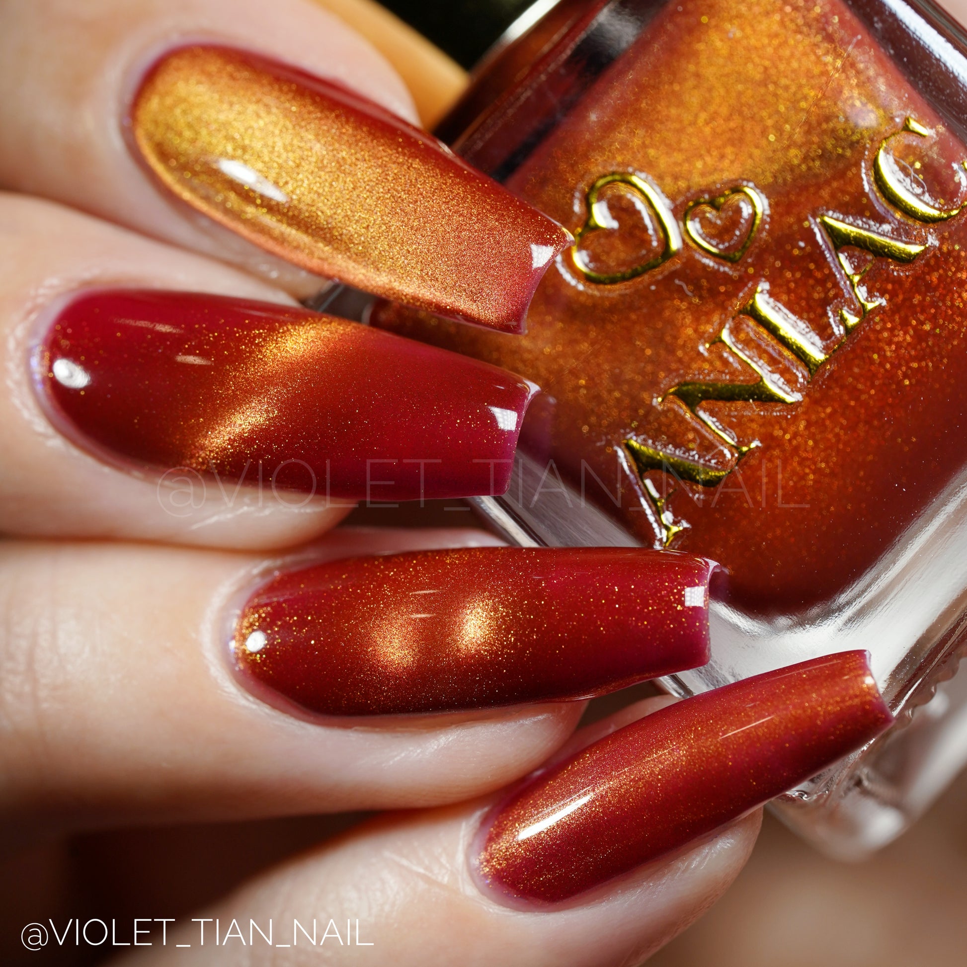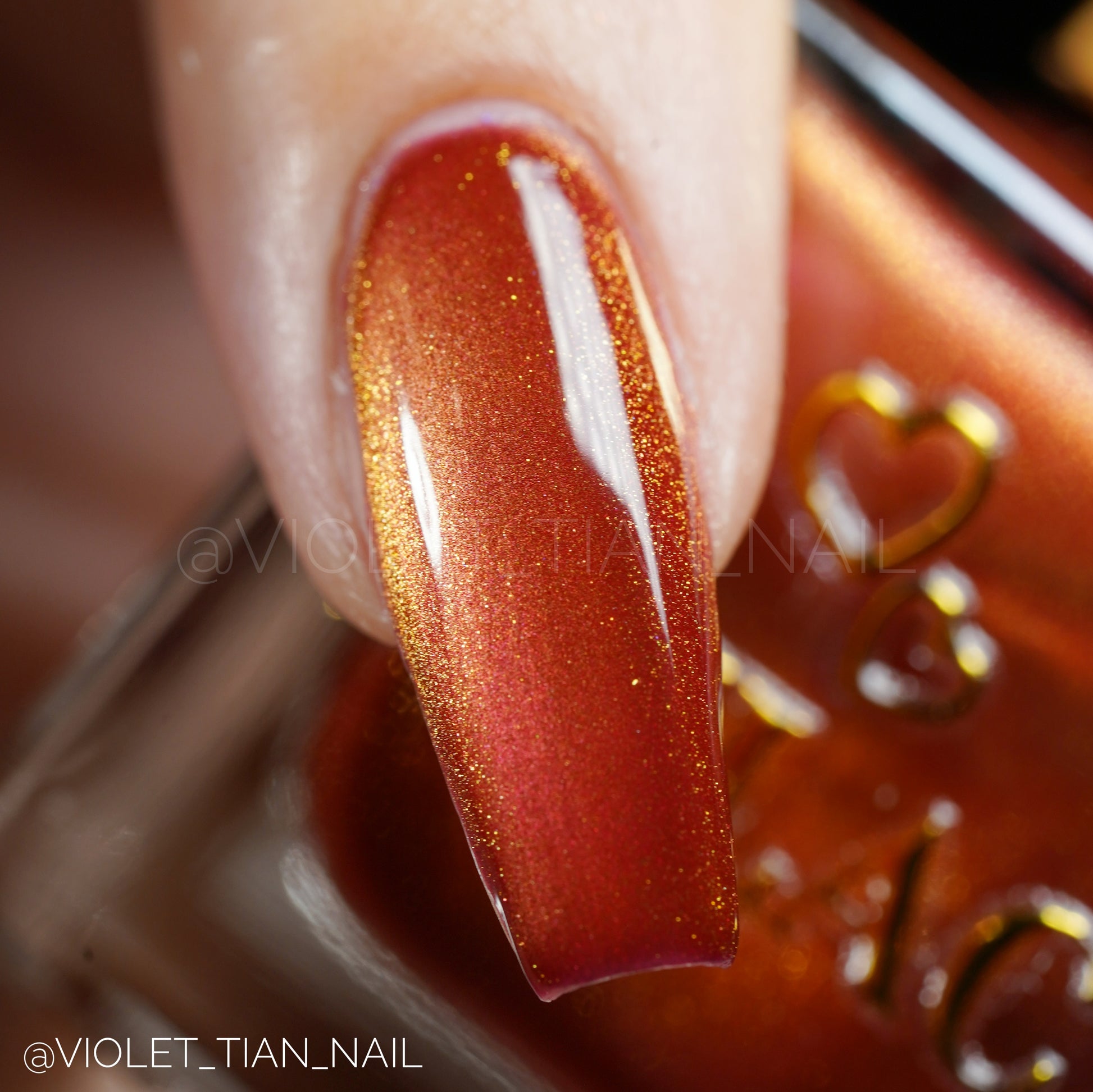 So Long(magnetic) - It’s a plum red base one with gold magnetic shimmers. There are 2 types of magnetic shimmer inside so it can create layers because of the reaction to the magnet. You’ll see it when applying on your nails.