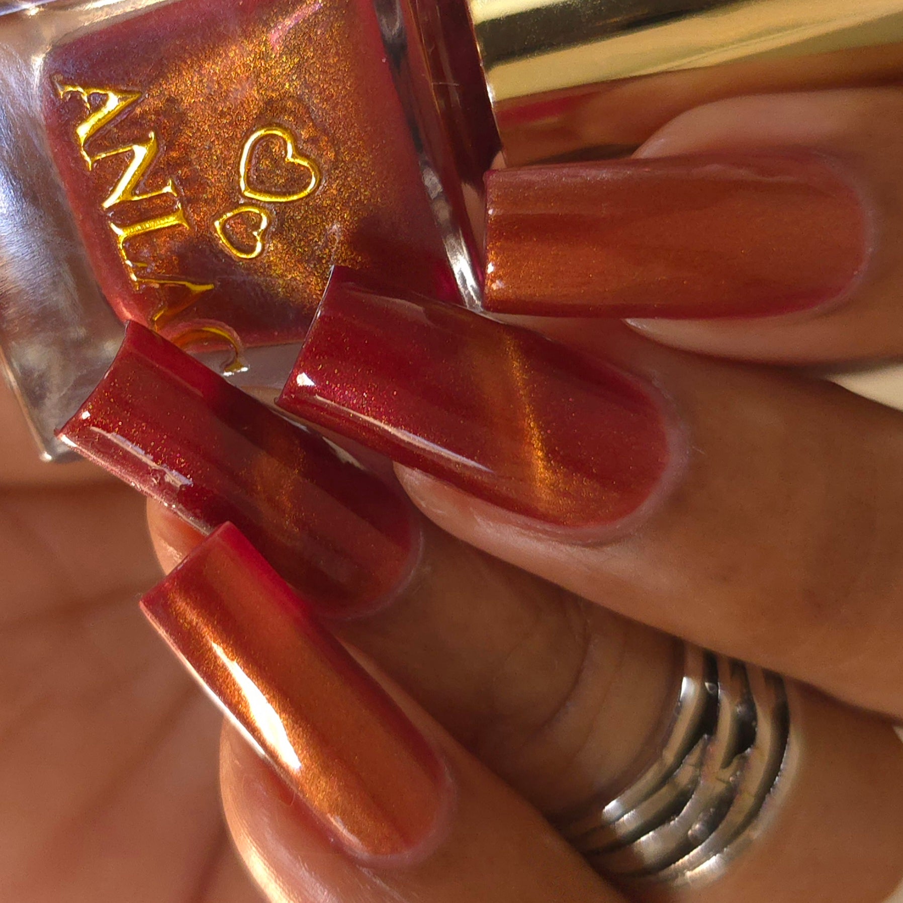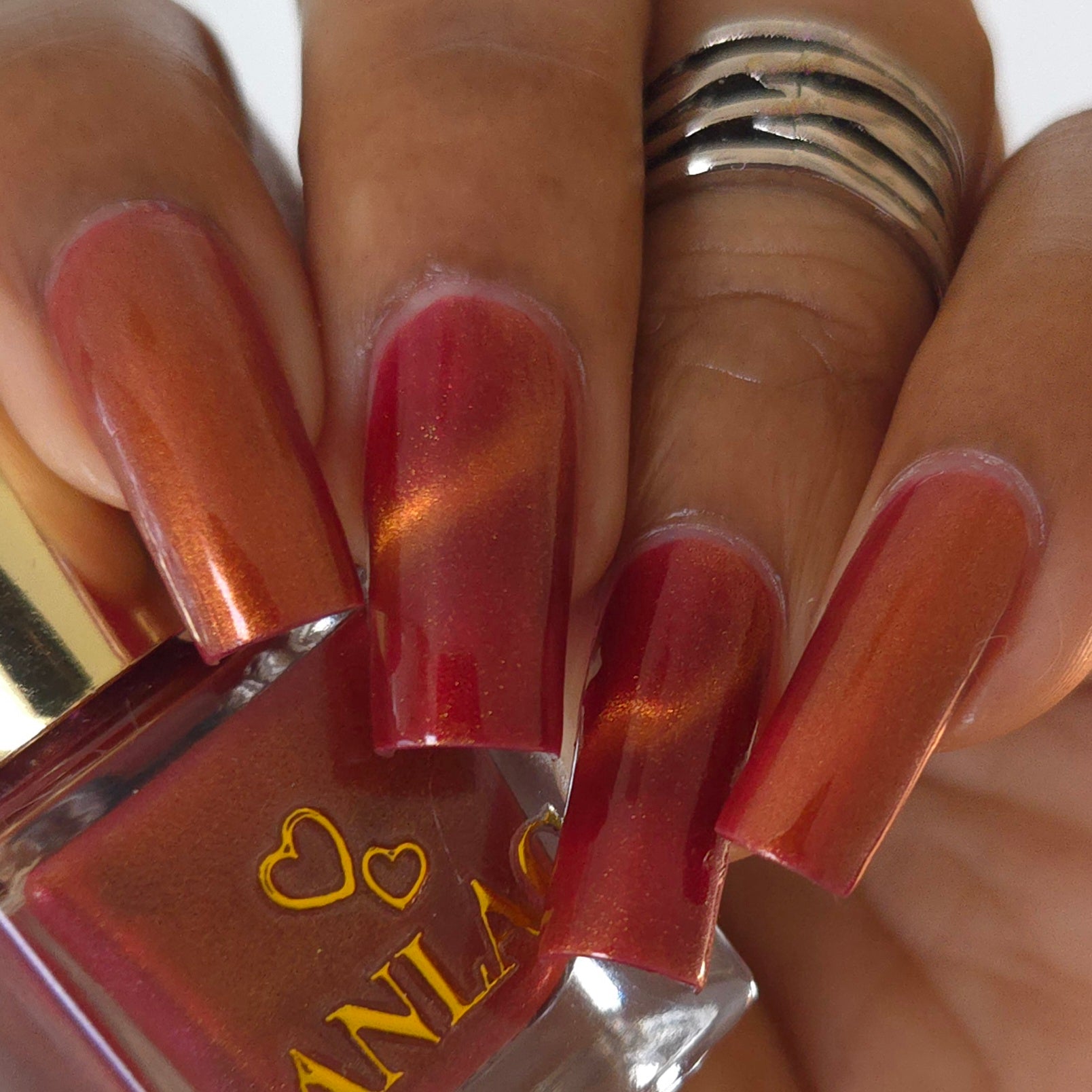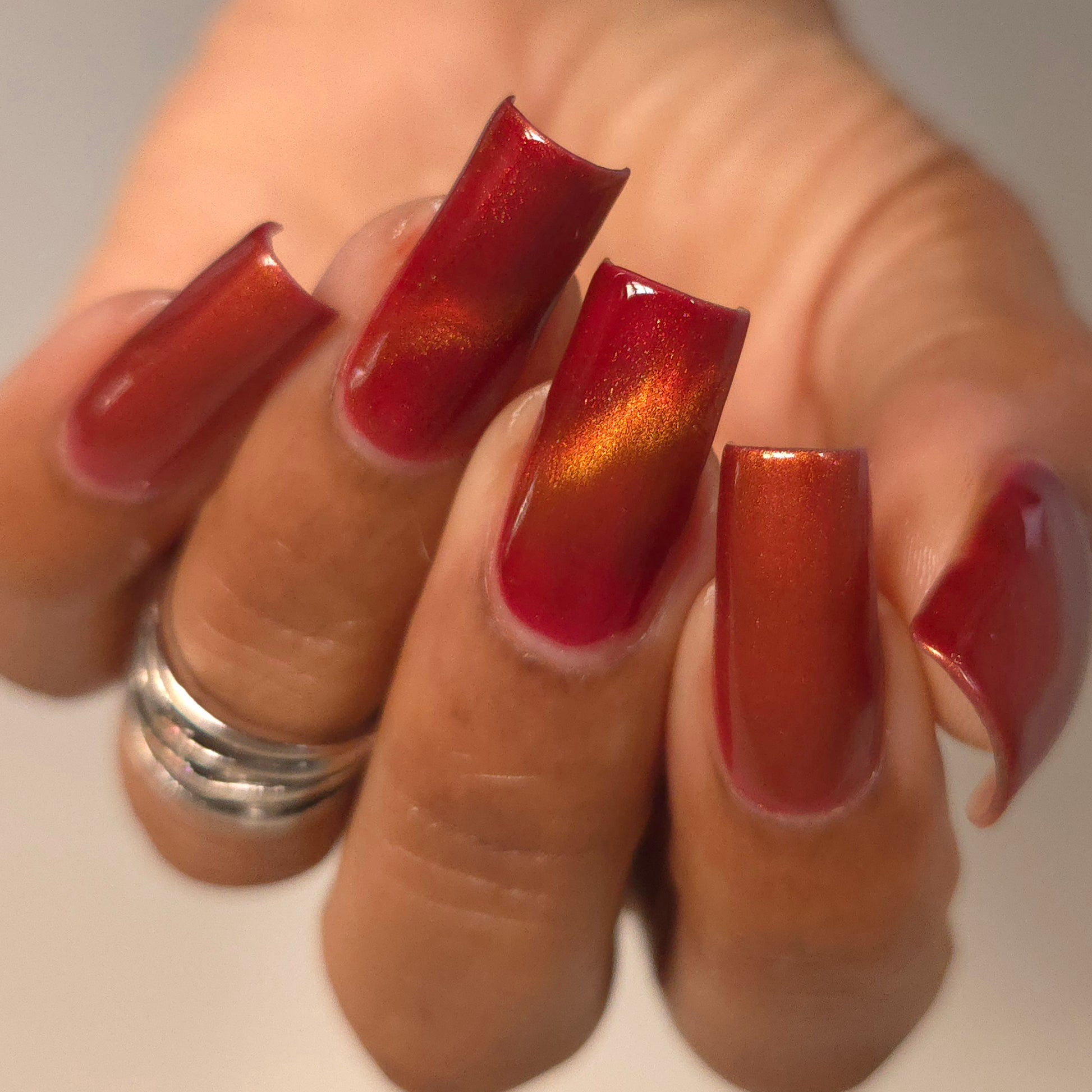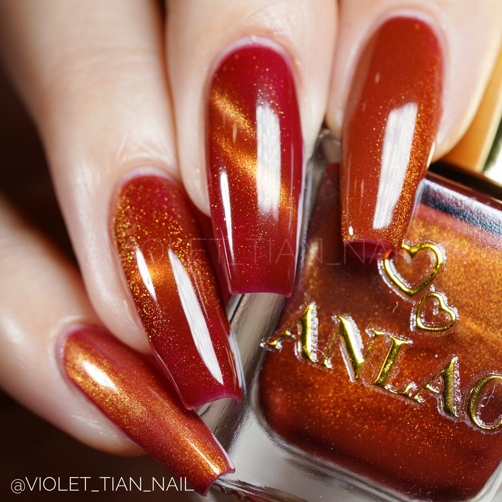 So Long(magnetic) - It’s a plum red base one with gold magnetic shimmers. There are 2 types of magnetic shimmer inside so it can create layers because of the reaction to the magnet. You’ll see it when applying on your nails.