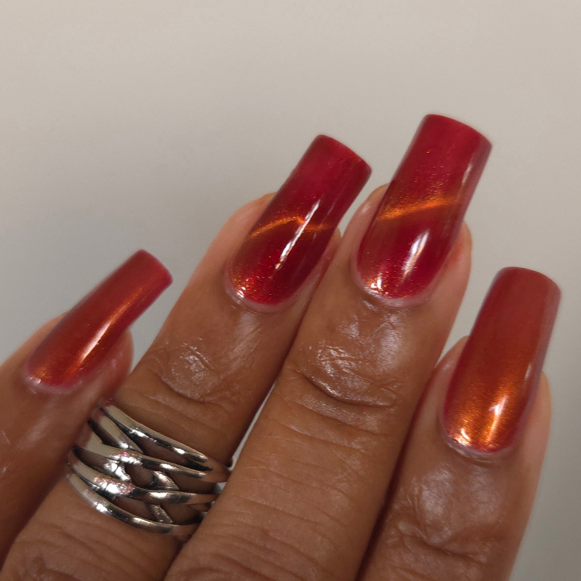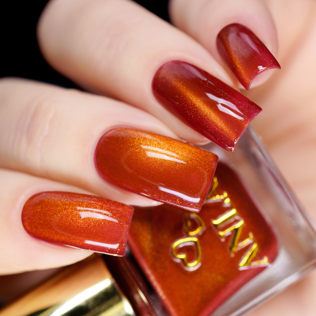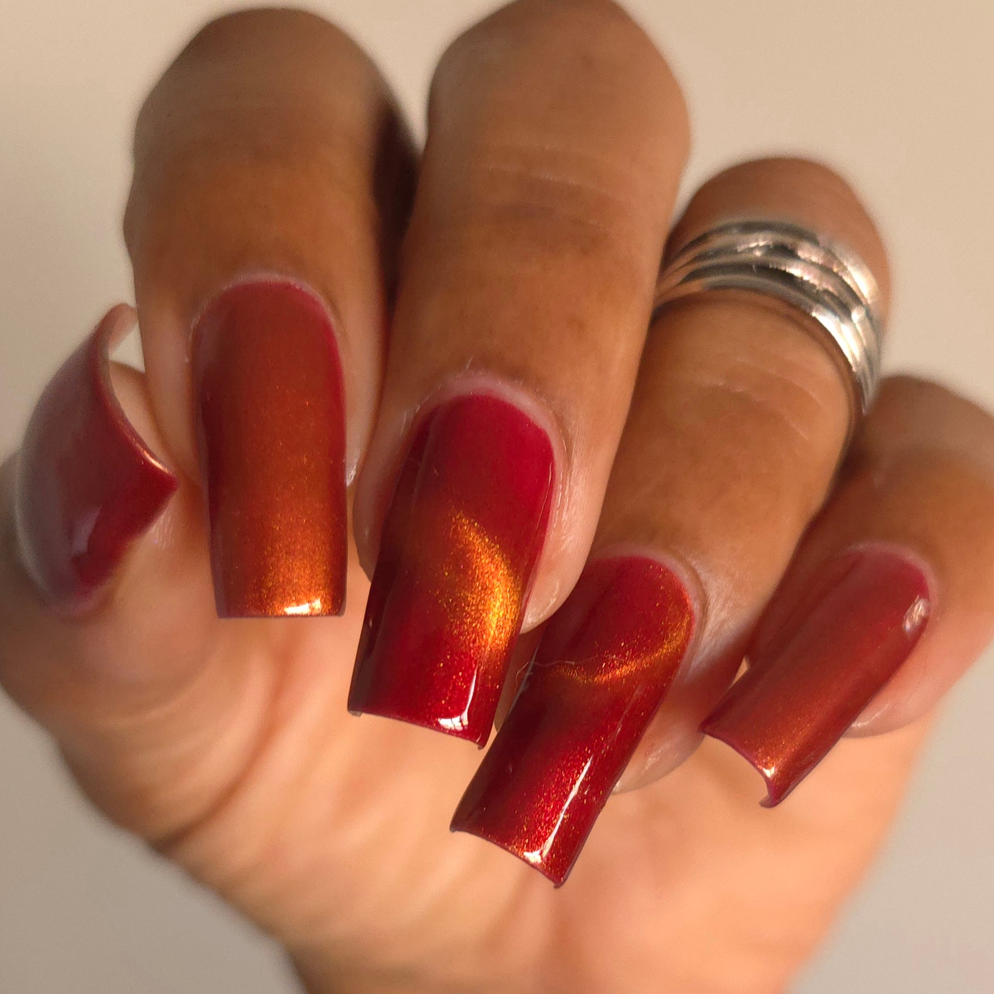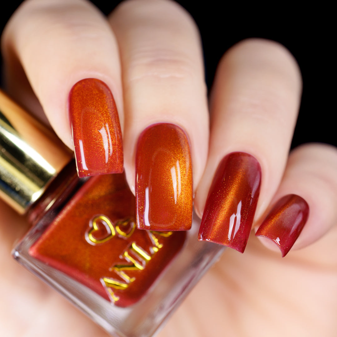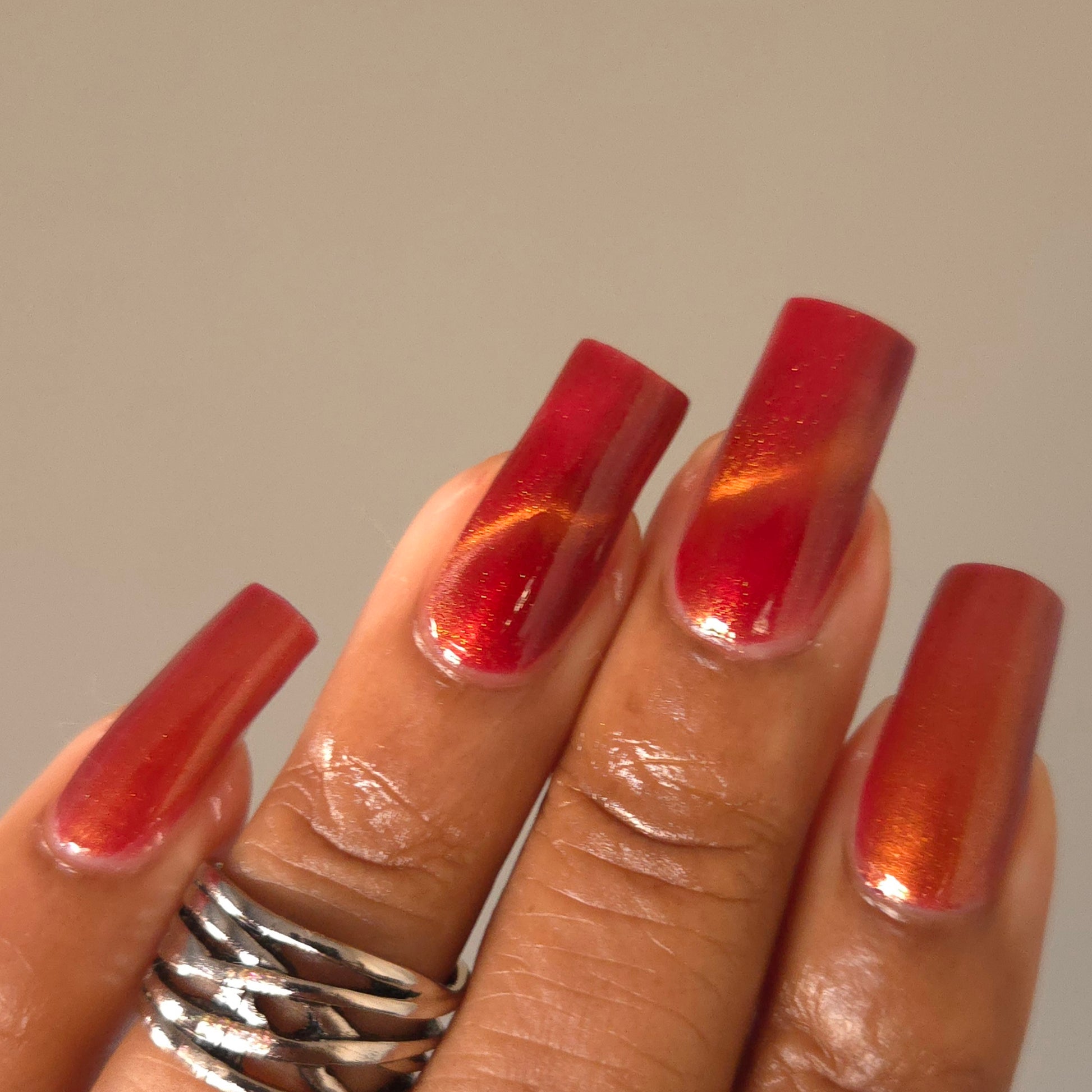 So Long(magnetic) - It’s a plum red base one with gold magnetic shimmers. There are 2 types of magnetic shimmer inside so it can create layers because of the reaction to the magnet. You’ll see it when applying on your nails.